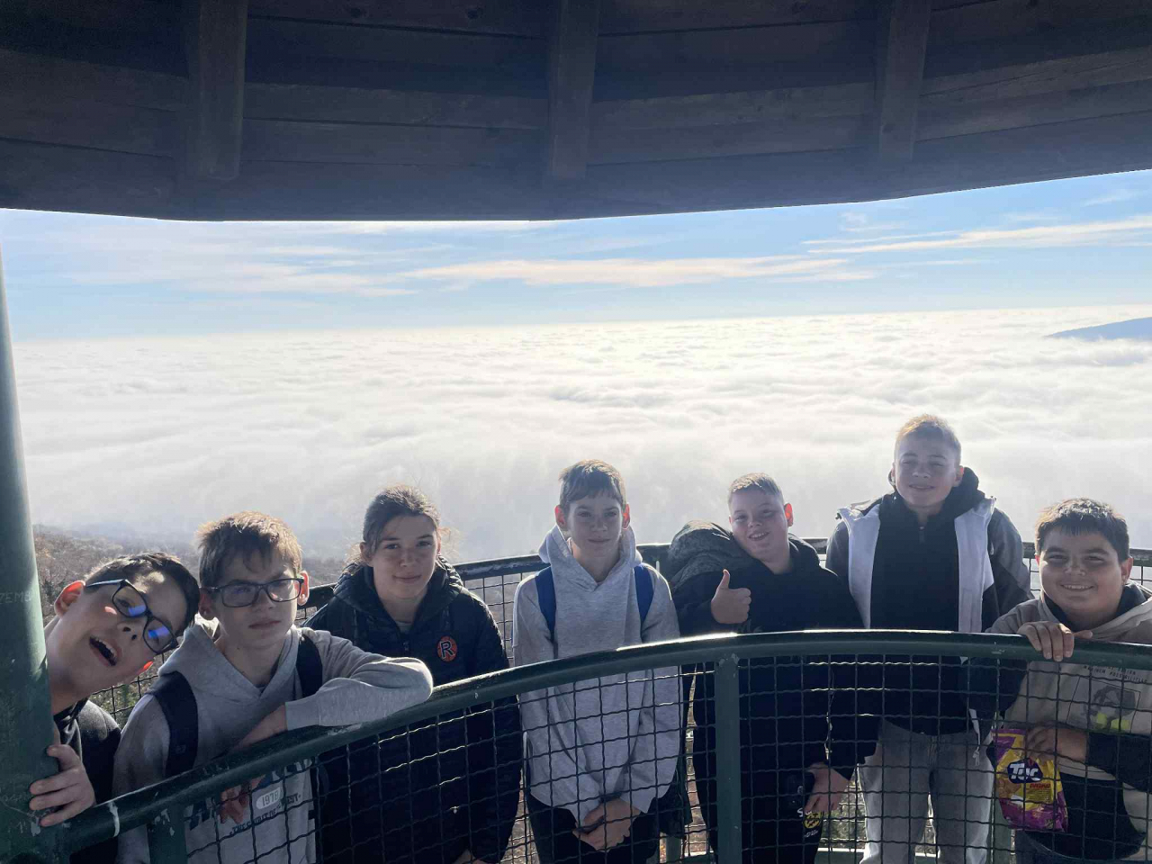 2020.11.20.-án iskolánk Ásványtan-és kőzettan, valamint öko-szakkörösei mecseki túrán vettek részt. A Tubes környéki tanulmányúton megismerkedtek a hegység 7 legjellemzőbb kőzetével és néhány híres ásványkincsével. A ködös időben indult kaland csúcspontját a kilátónál elénk tárult mennyei látvány jelentette. Szerencsénkre egy igen ritka légköri jelenséget tapasztalhattunk meg. A Misina és a Tubes szigetként emelkedtek ki a környezetet beborító sűrű ködfátyolból.