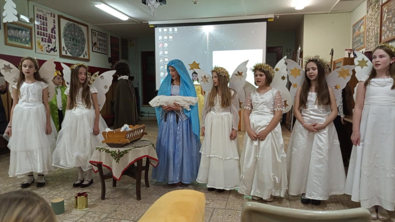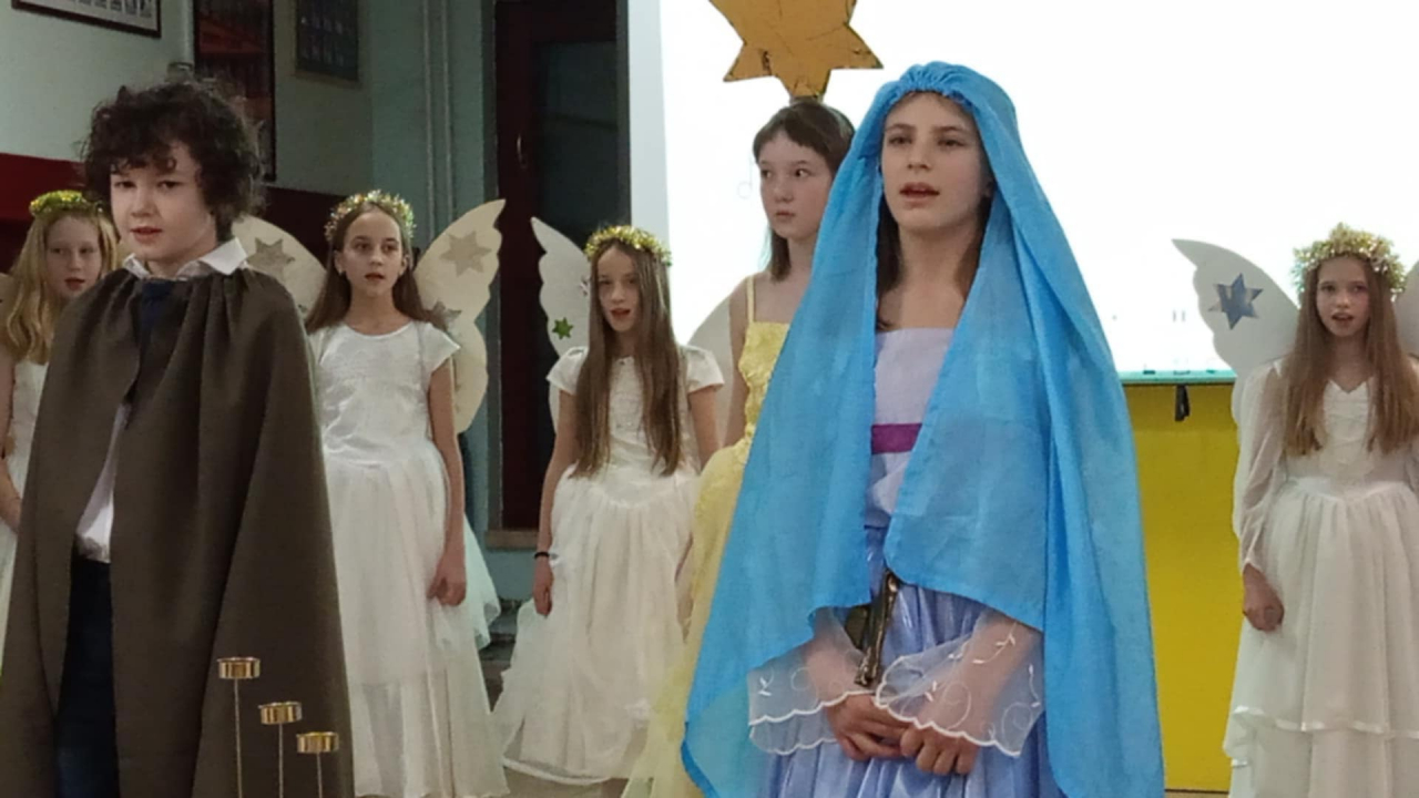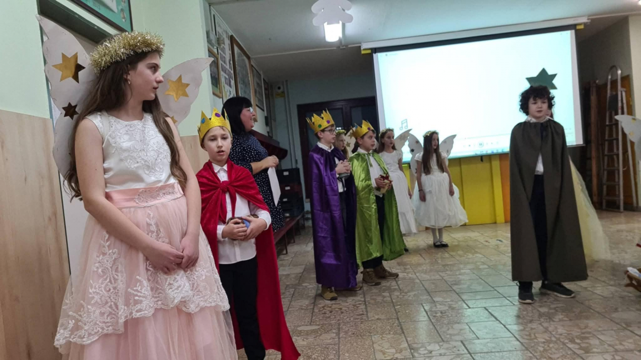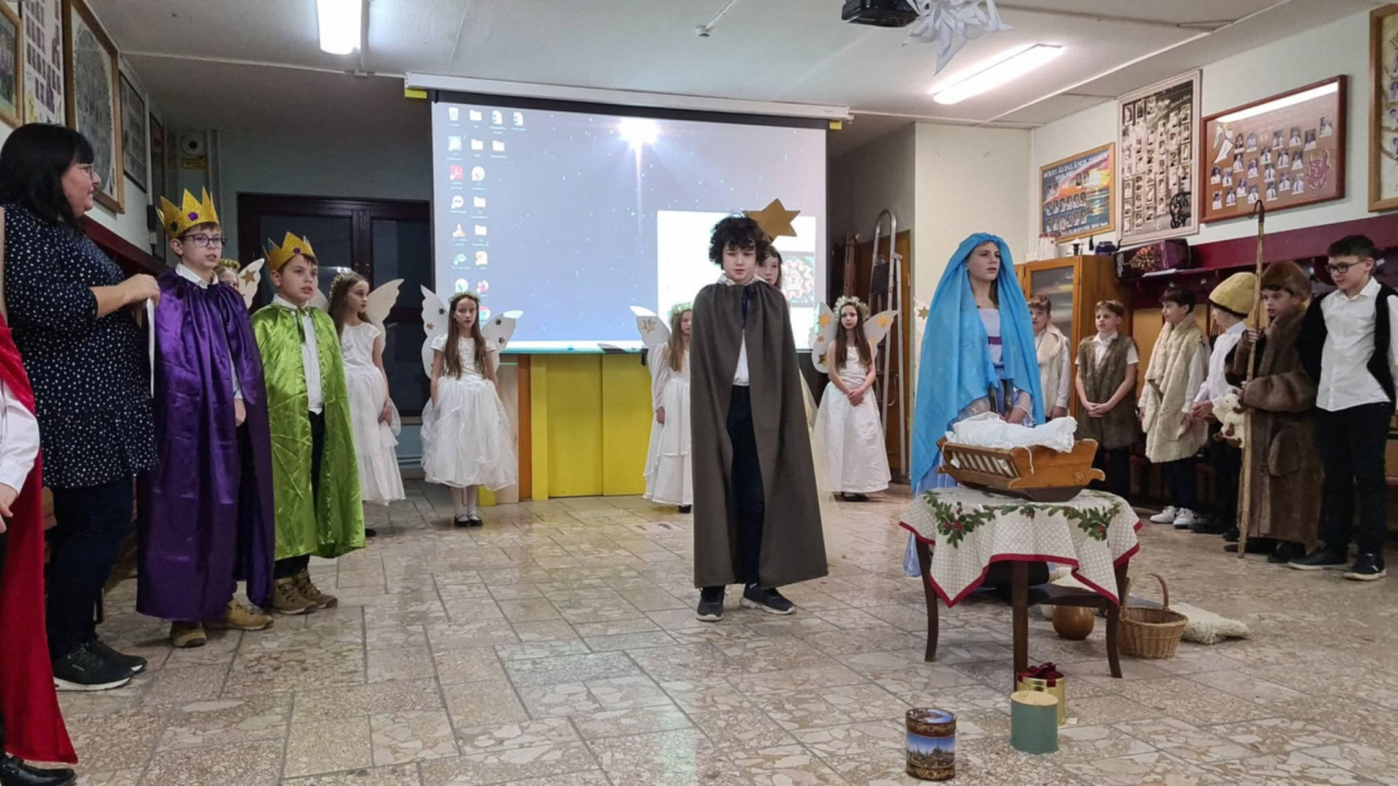 5.c1 osztály karácsonyi hangolódás címmel betlehemes színdarabot adott elő a gyerekek családjainak, majd együtt társasoztak, beszélgettek.
