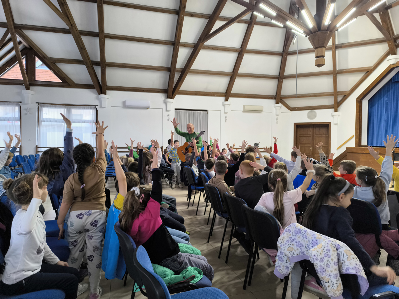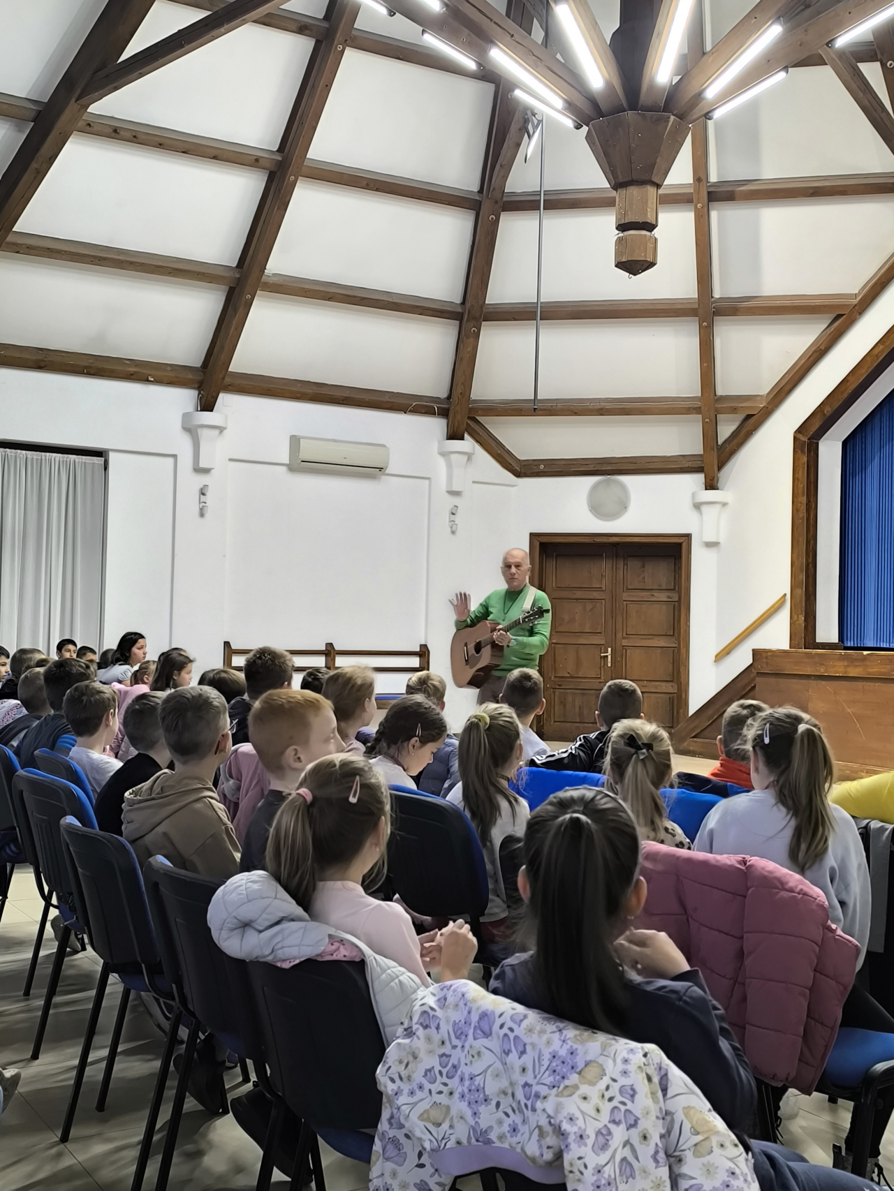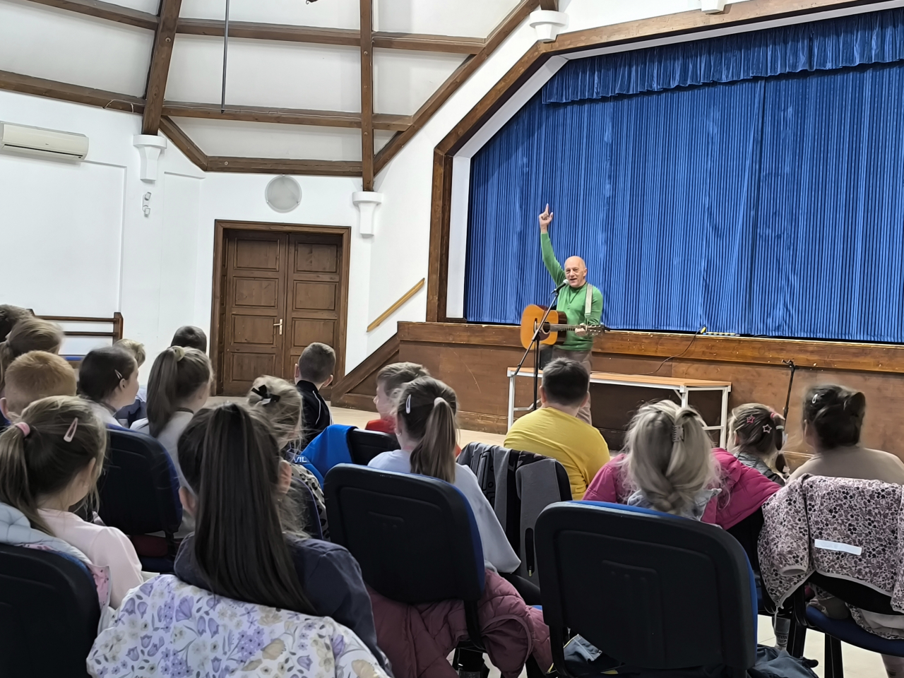 Ma egy különleges előadáson vettek részt az 1-3. évfolyamos gyermekek a LEP program keretében. Az előadó verseket zenésített meg, és csodás hangulatot teremtett. A gyerekek figyelemmel hallgatták a dalokat, sok mosoly és taps kísérte a műsort.