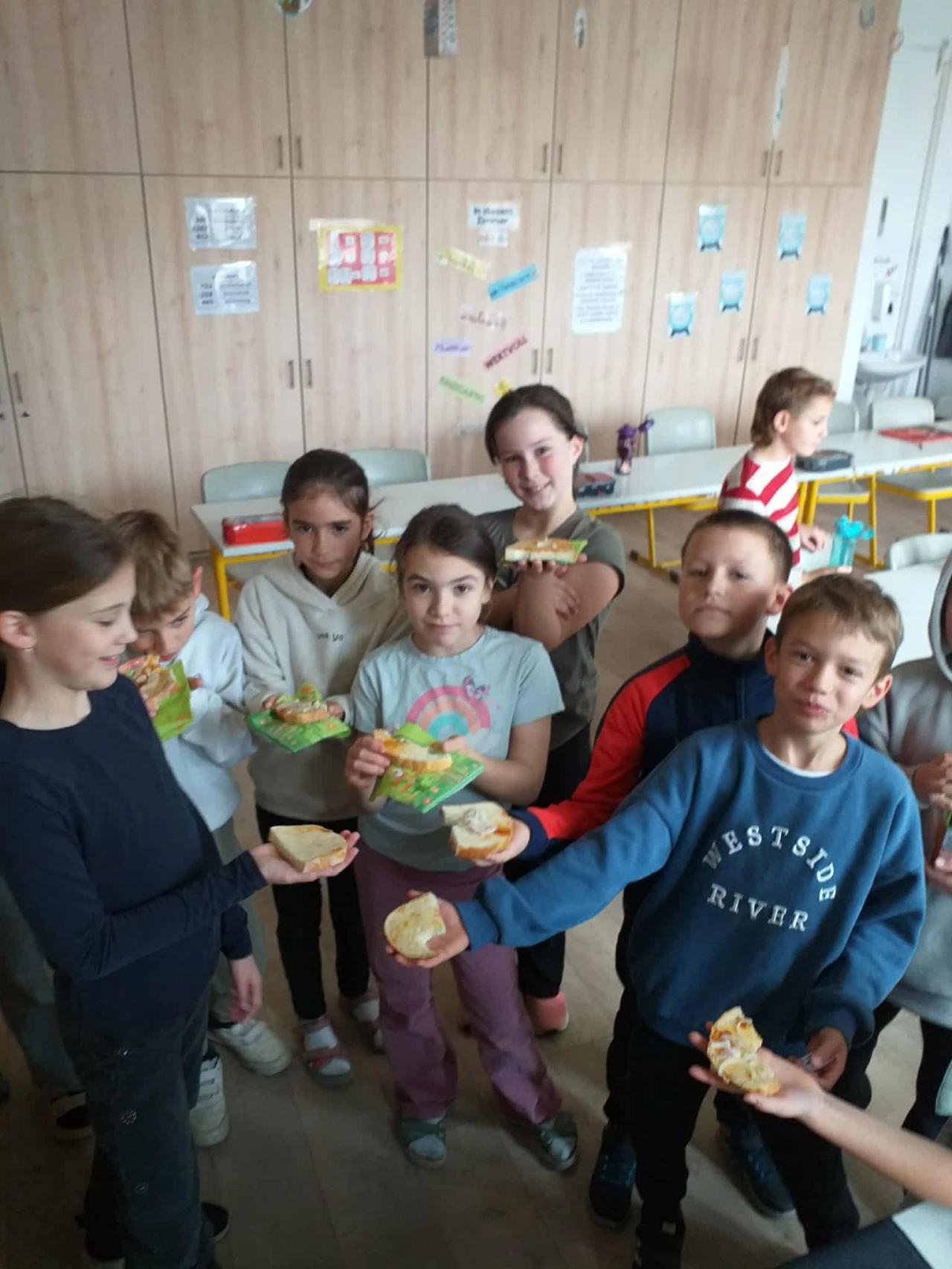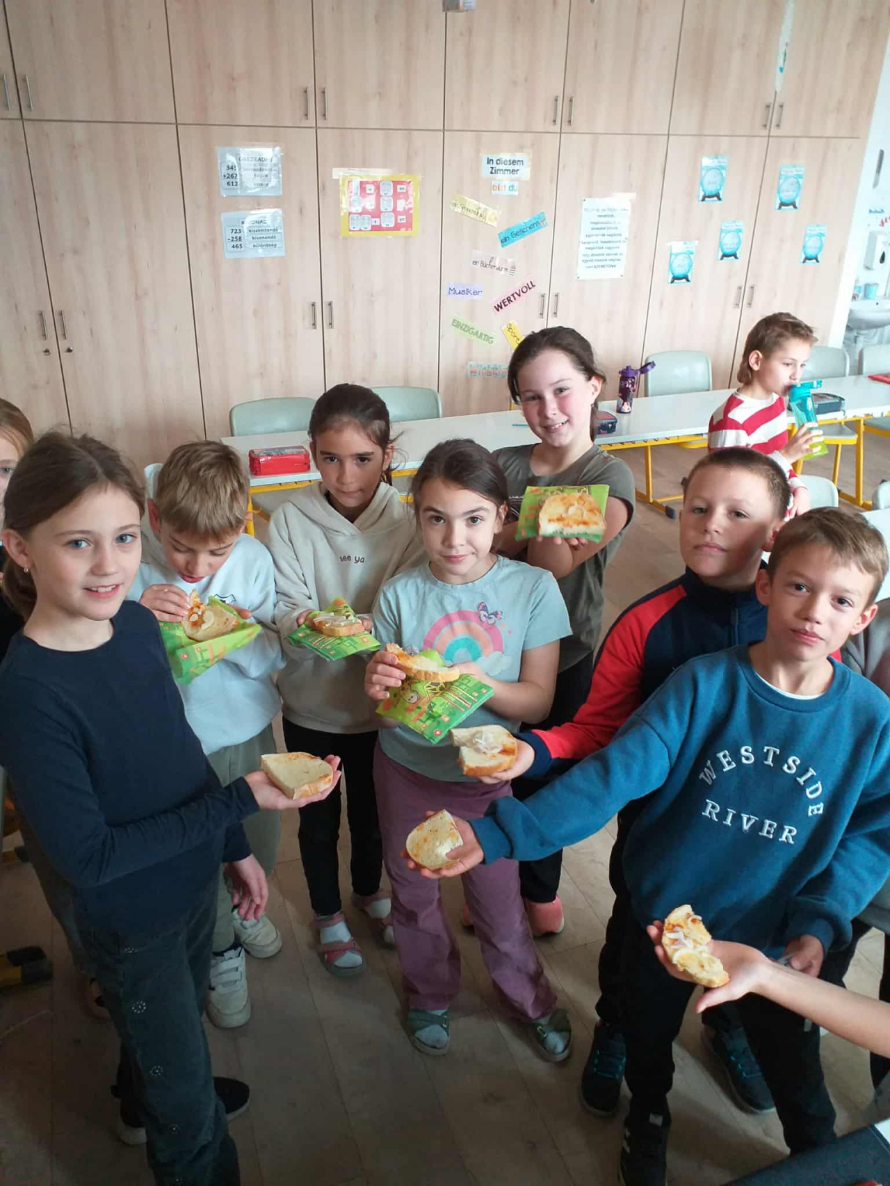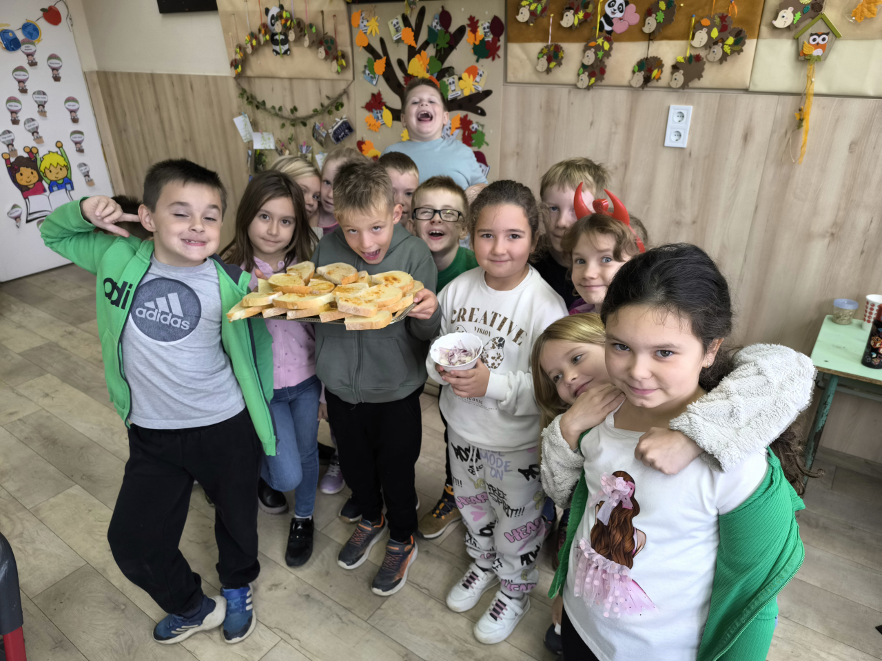 Márton napon finom zsíros kenyeret kaphattak a gyerekek lilahagymával. Köszönjük a szülők segítségét!