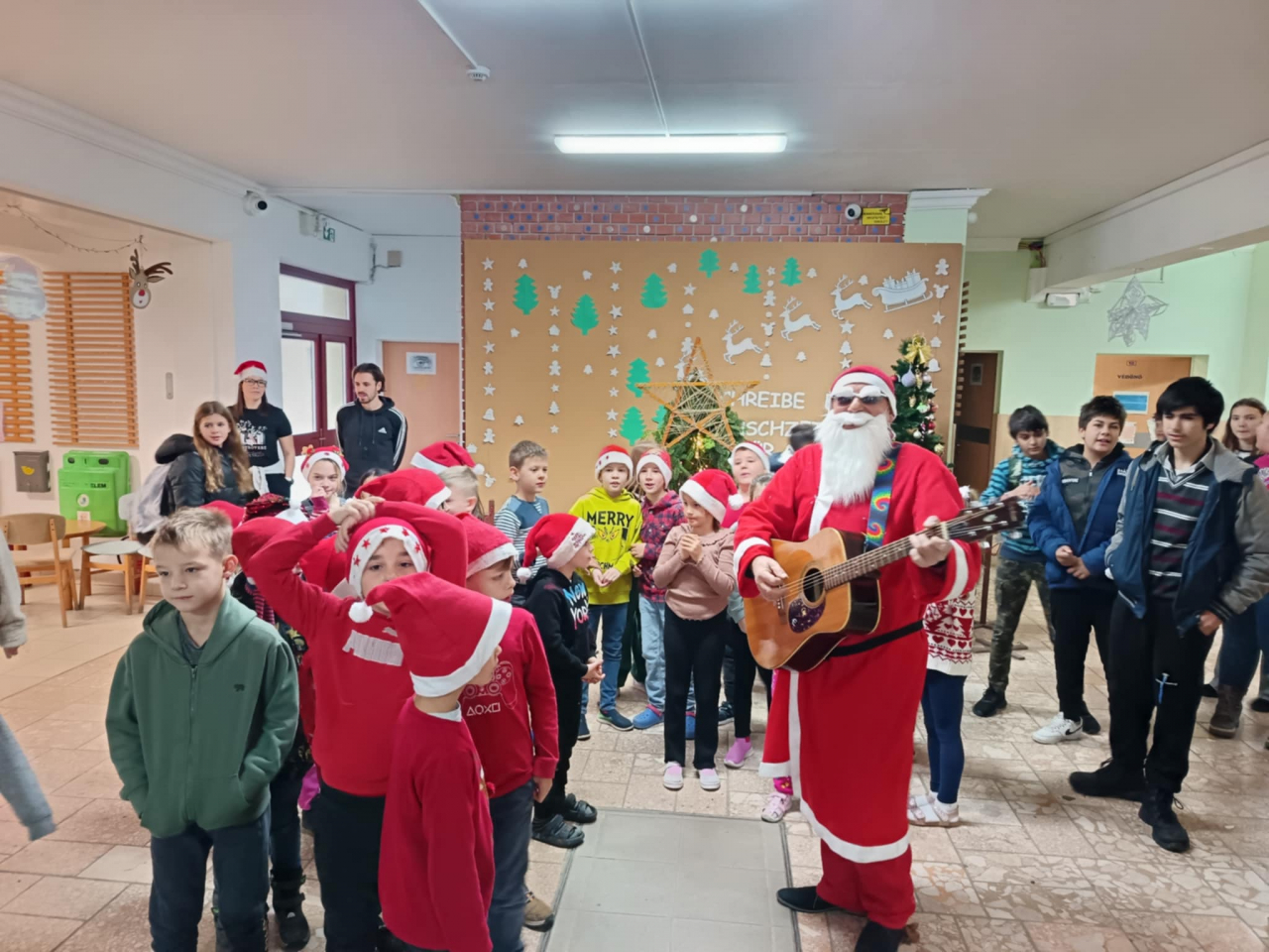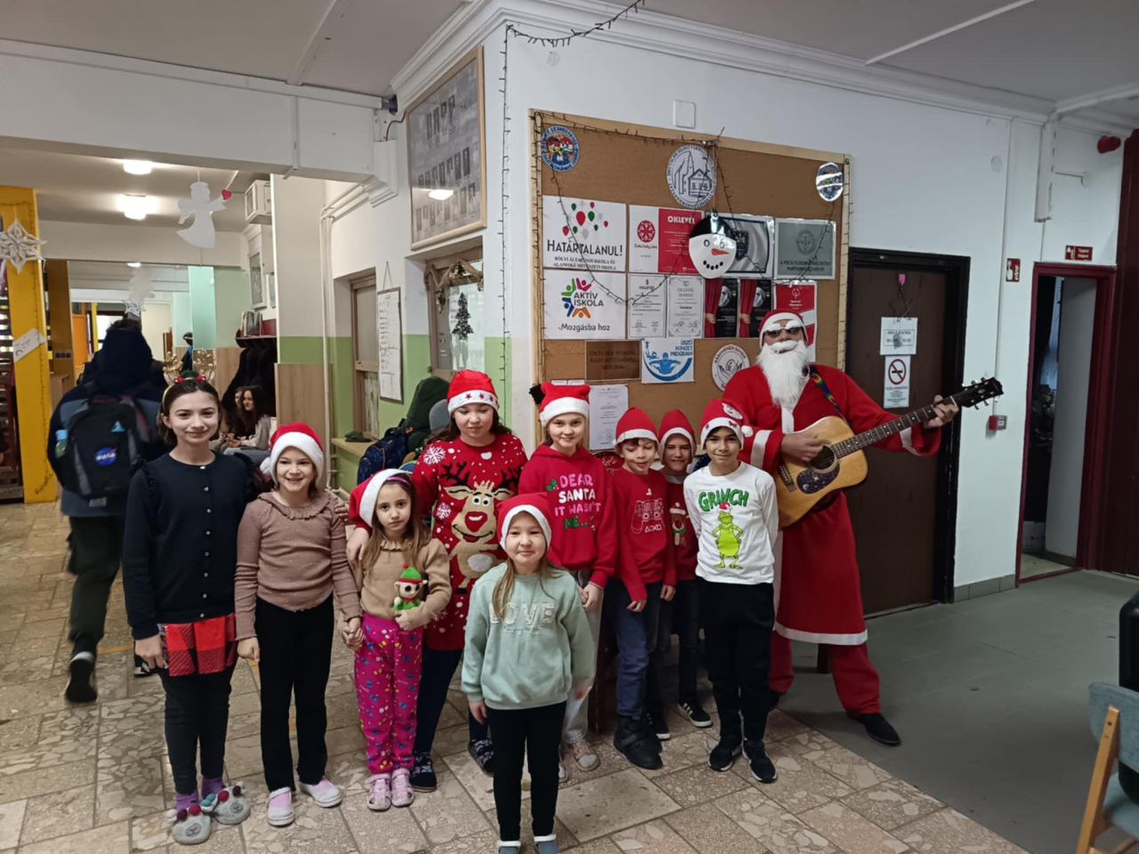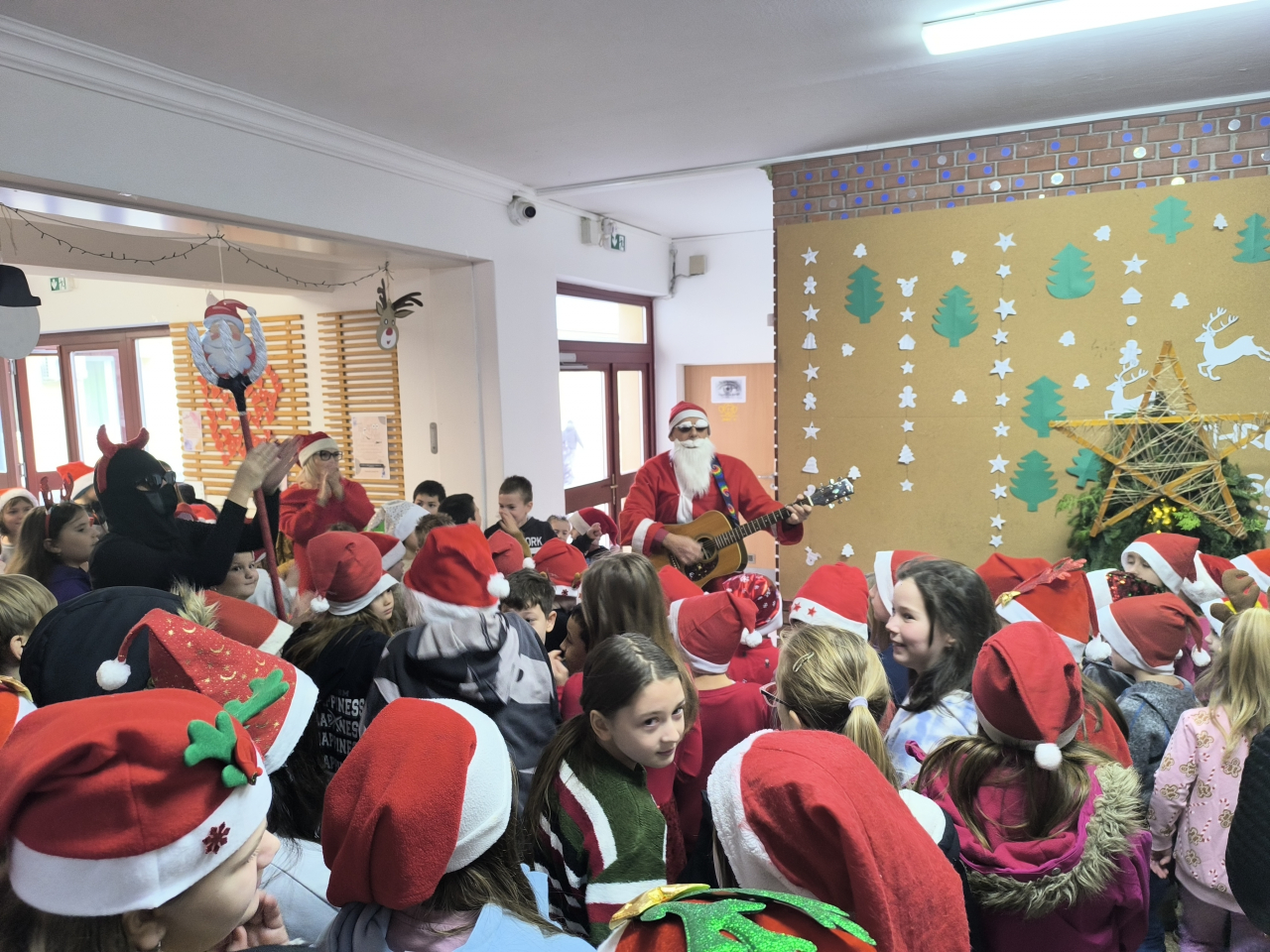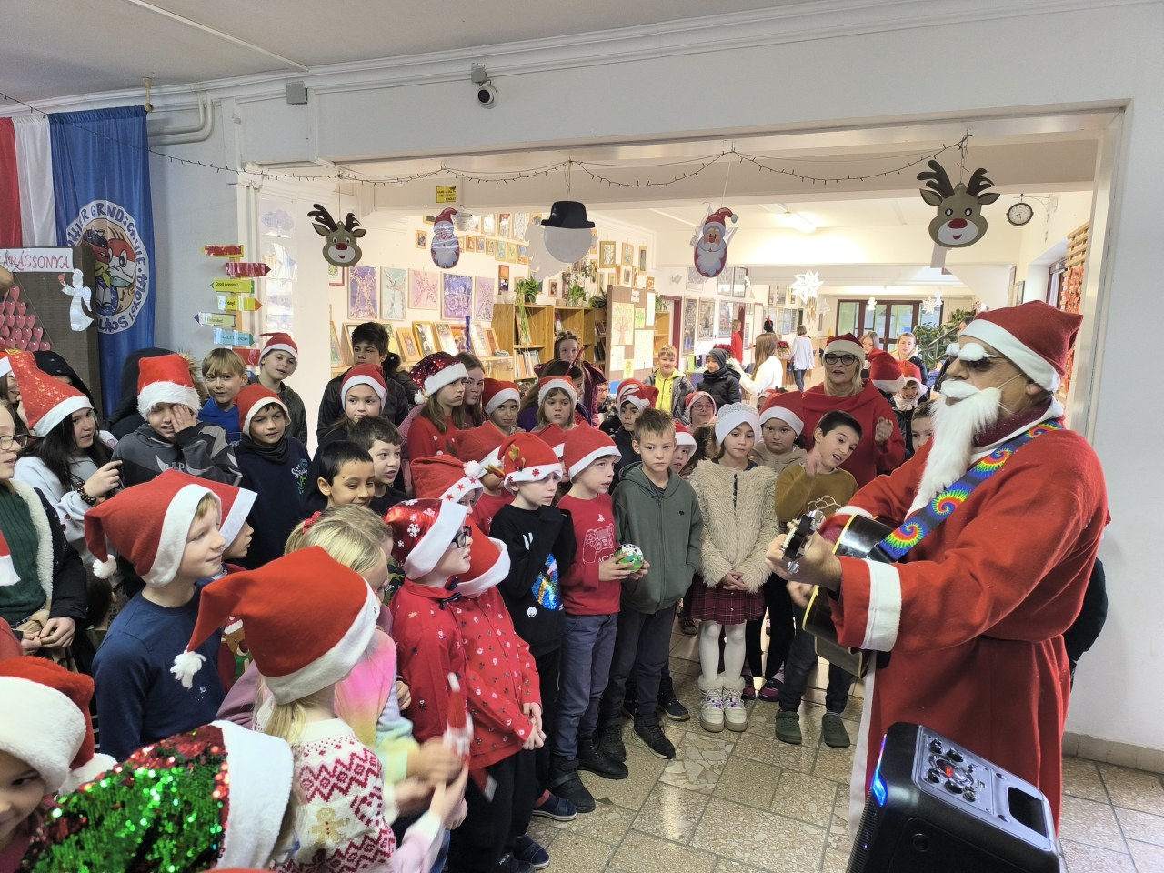 Különleges nap várta a gyerekeket: már a bejáratnál a Mikulás fogadta őket angyalokkal és krampusz segítőkkel. A vidám hangulatot énekek és nevetések töltötték meg, mindenki ünnepi izgalommal érkezett az iskolába.