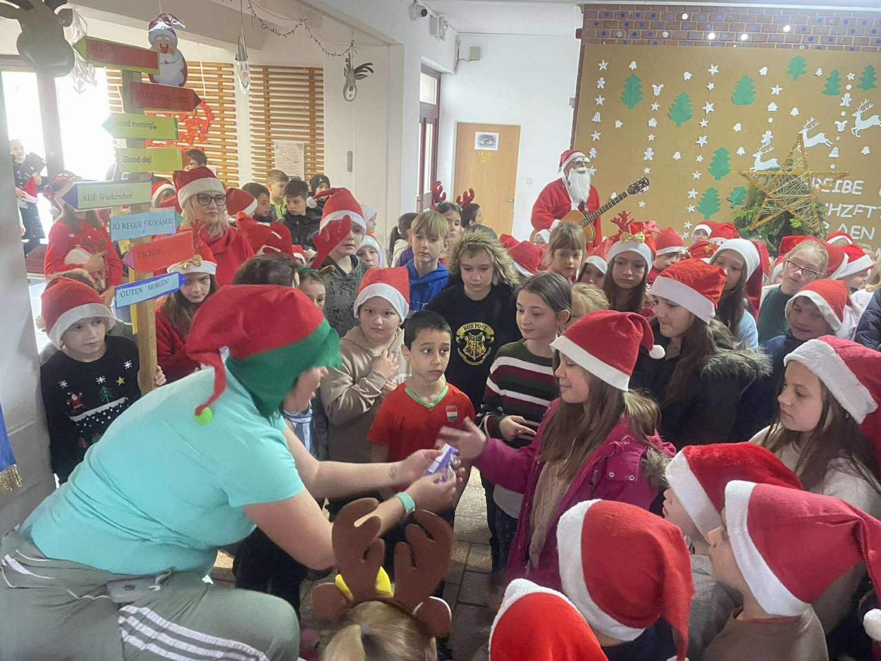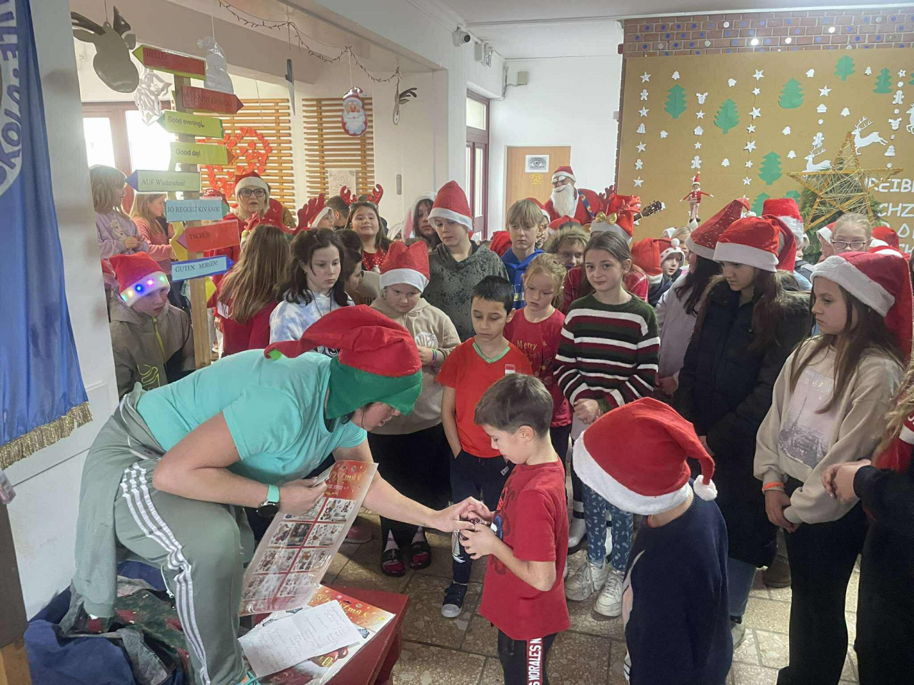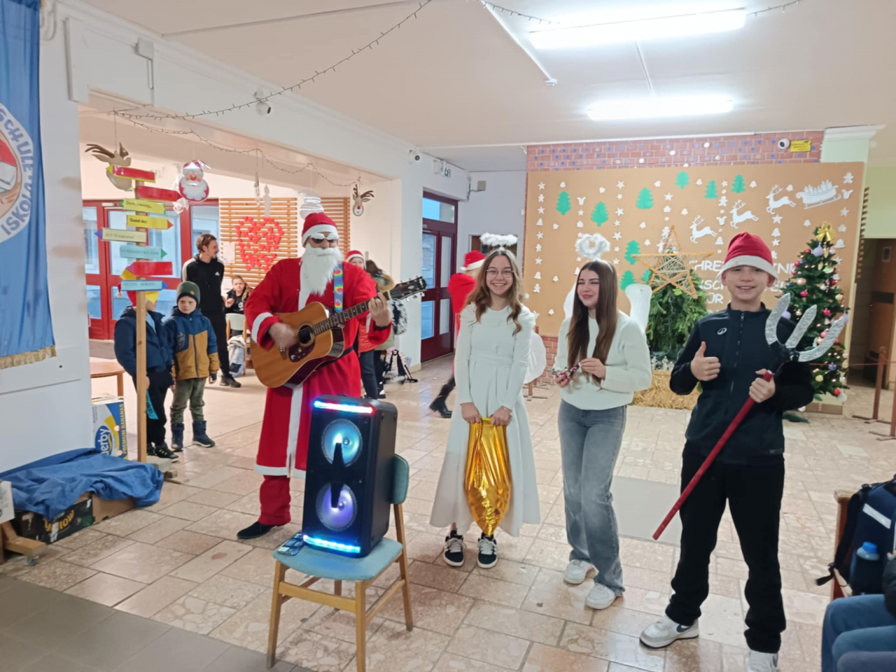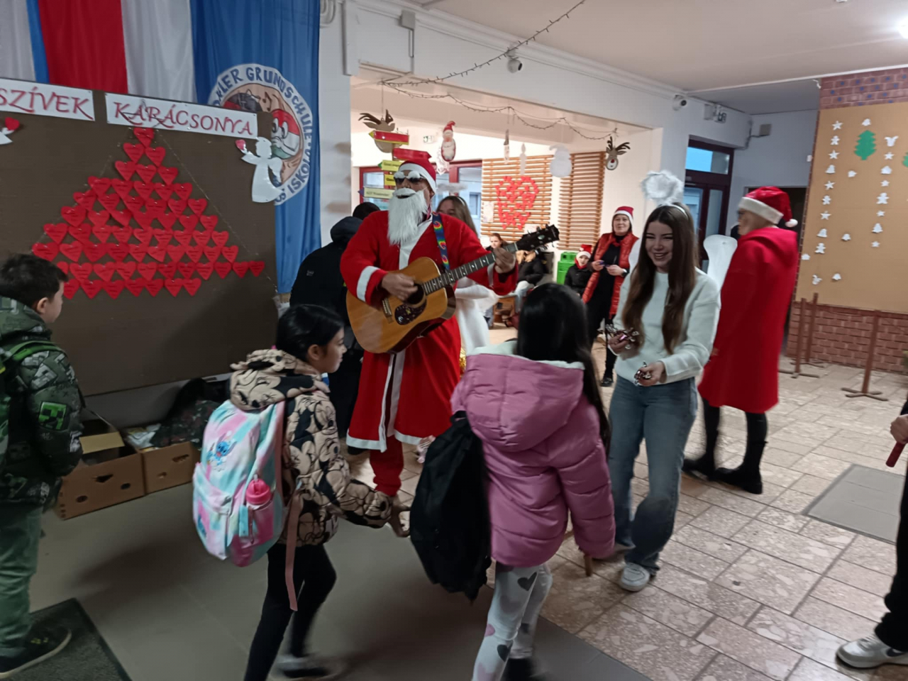 Különleges nap várta a gyerekeket: már a bejáratnál a Mikulás fogadta őket angyalokkal és krampusz segítőkkel. A vidám hangulatot énekek és nevetések töltötték meg, mindenki ünnepi izgalommal érkezett az iskolába.