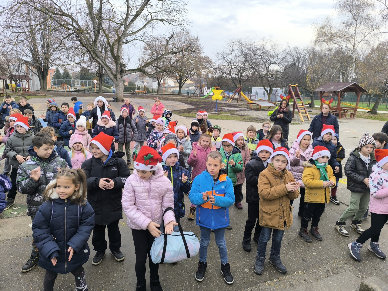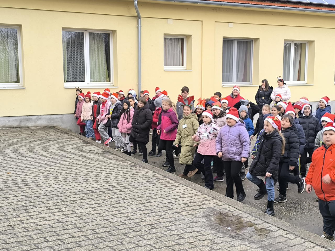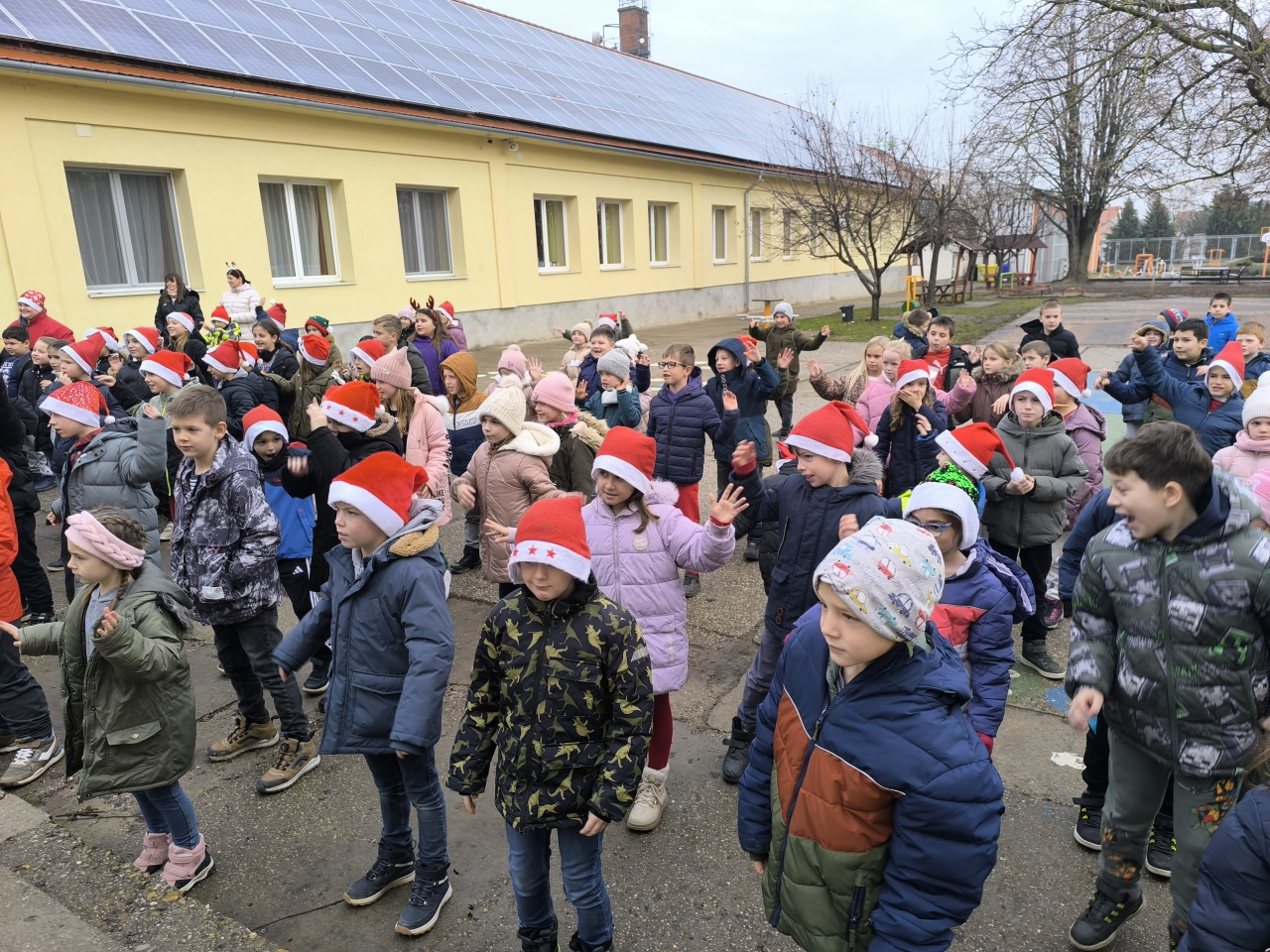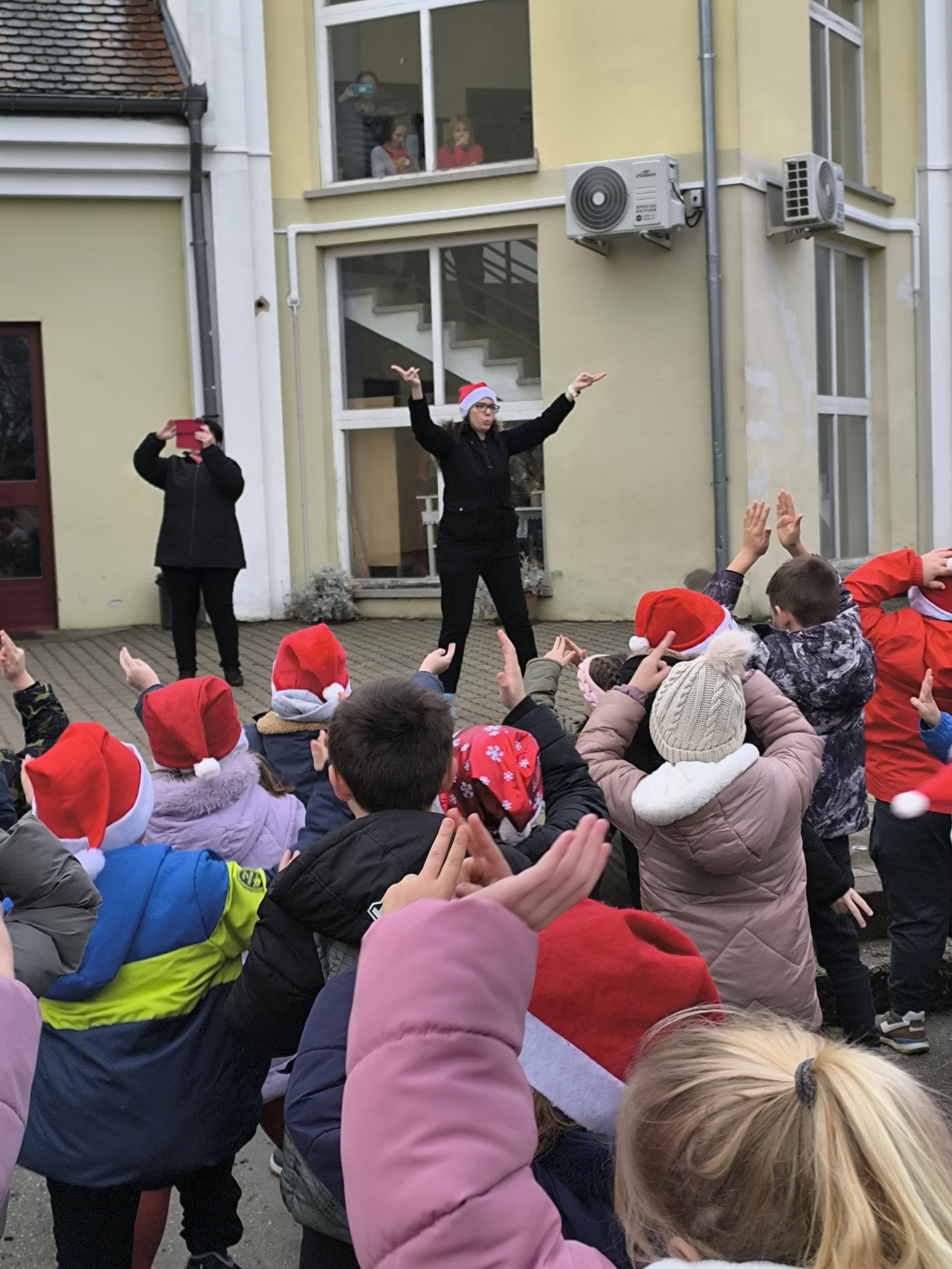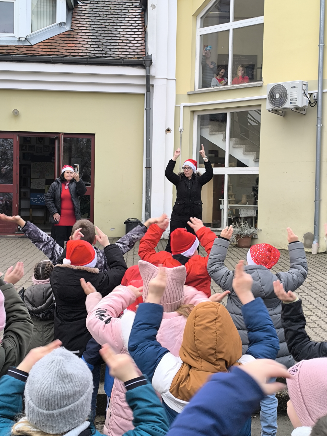 Az alsósok az iskola udvarán Mikulás-fitnesszel tették még színesebbé és vidámabbá ezt a napot, együtt mozogva, ugrándozva és nevetve.