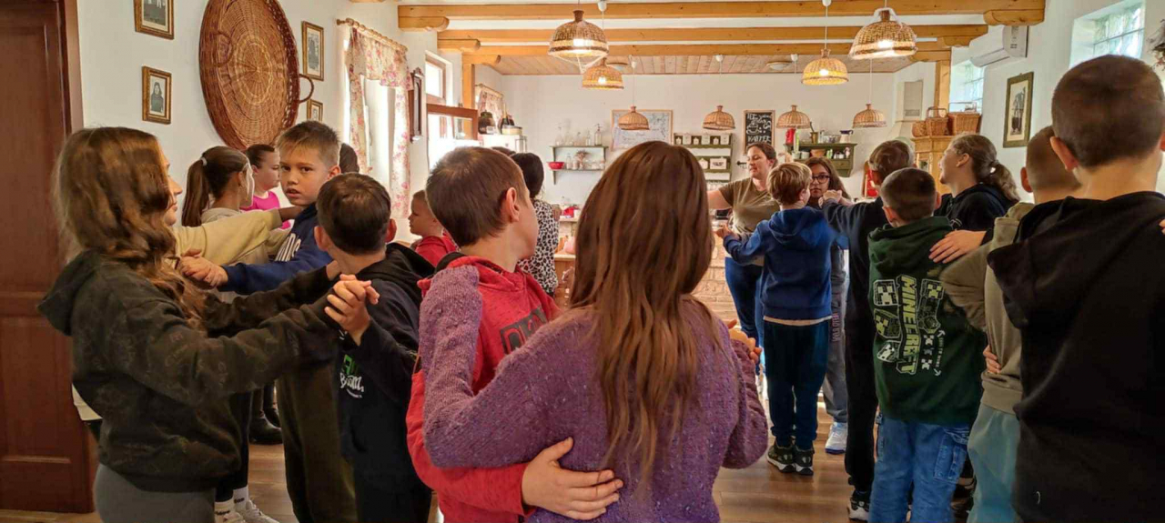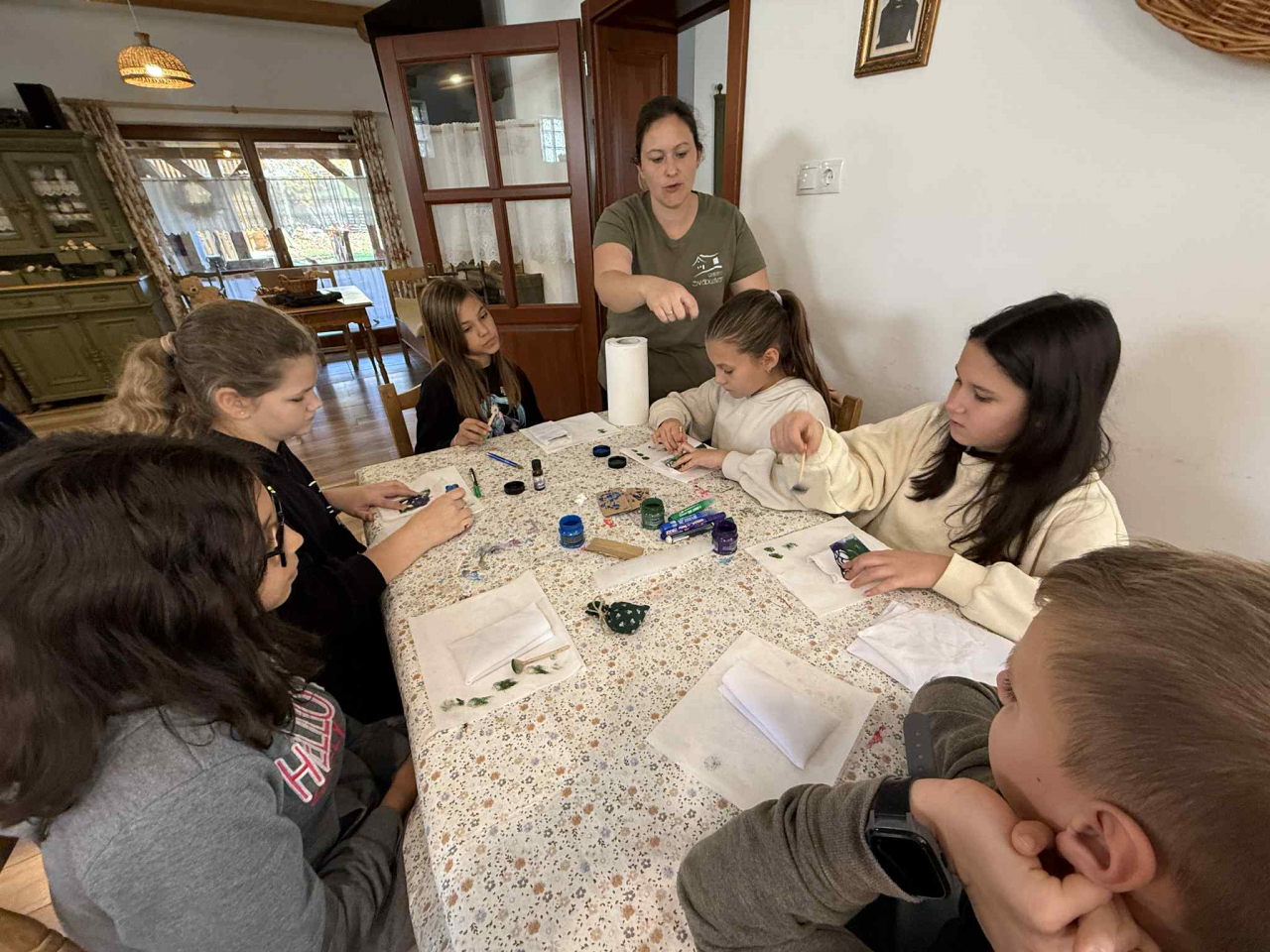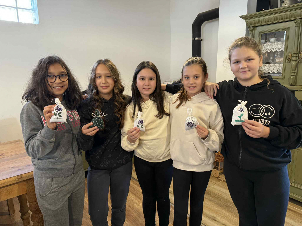 Vergangenen Mittwoch, am 5. November besuchte die Klasse 5a unserer Schule den Schwabenhof in Bawaz. Zuerst besichtigten wir das ungarndeutsche Heimatmuseum in Bawaz, währenddessen die Kinder viele interessante Informationen über die Ungarndeutschen erfuhren. Anschließend lösten sie in Gruppen interaktive Aufgaben auf Tablets, die alle gewissenhaft erledigten. Danach folgte der Handwerksworkshop: Sie stellten Lavendel- und Rosmarinsäckchen her und lernten dabei die wohltuenden Wirkungen dieser Heilpflanzen kennen. Schließlich, aber nicht zuletzt, kam auch das Tanzen an die Reihe. Sie erlernten drei Tänze aus Bawaz: „Zum Tanzen, da geht ein Mädel“, „Hammerschmiedsgell“ und „Hoppsa, Schwabenliesl“. Nach dem leckeren Mittagessen kehrten wir schließlich mit vielen Erlebnissen, neuem Wissen und wunderschönen Säckchen nach Hause zurück.