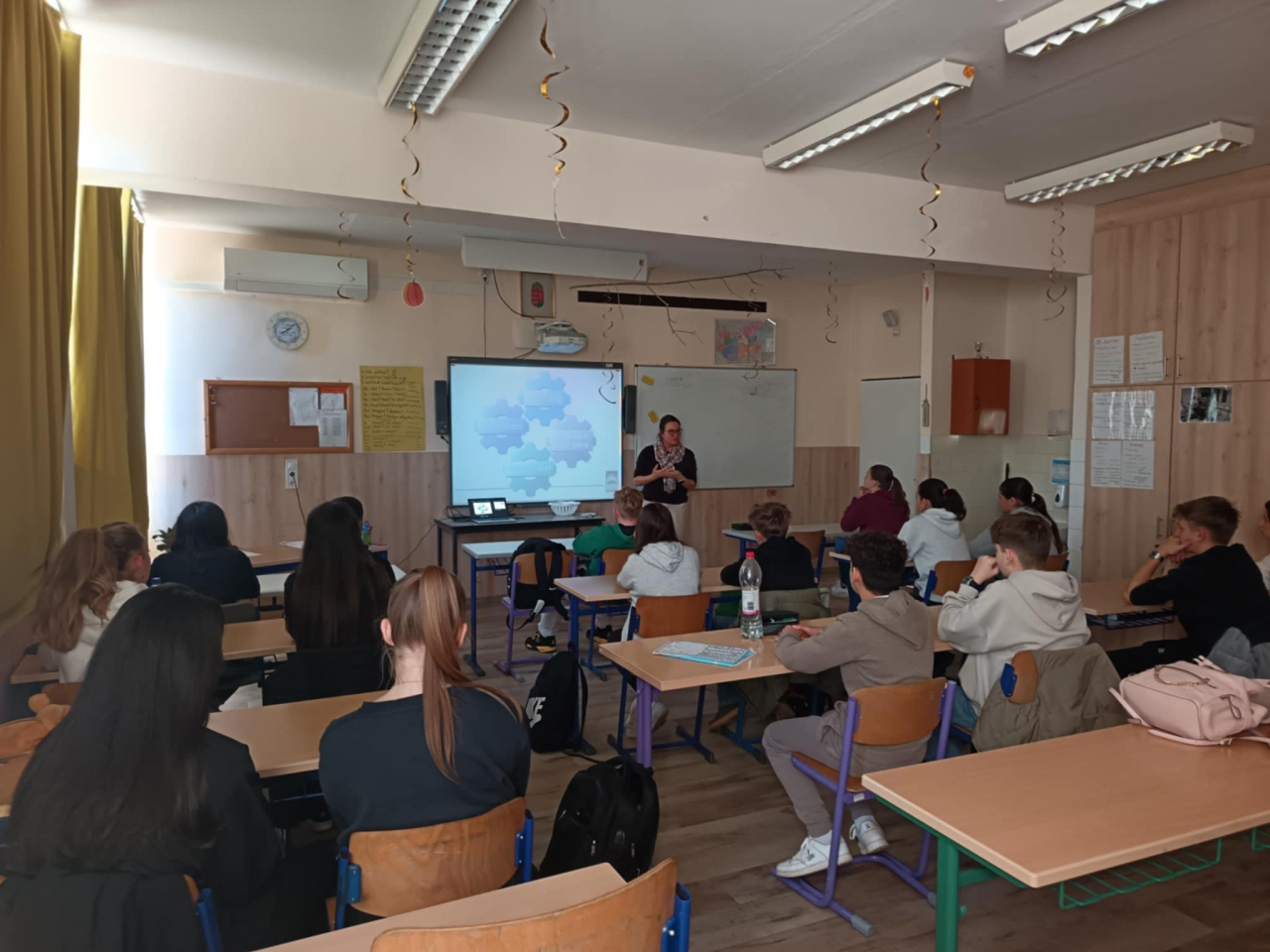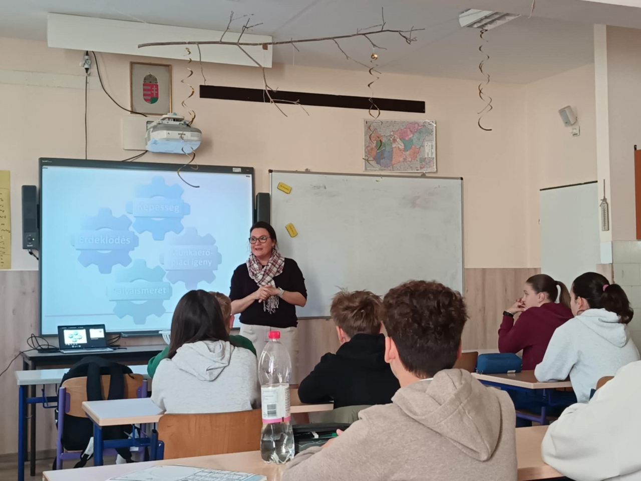 Purger Valéria tartott ma a 7.-es és 8.-os diákjaink számára egy-egy pályaorientációs órát. A diákokat beszélgetésre invitálta a továbbtanulási terveikről, iránymutatást adott nekik a választott területen, valamint további gondolkodásra ösztönözte őket. Reméljük, ami eddig még valamennyire homályos volt, ma egy kicsit tisztább, átláthatóbb lett! Köszönjük a lehetőséget!