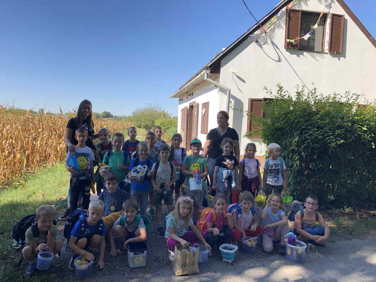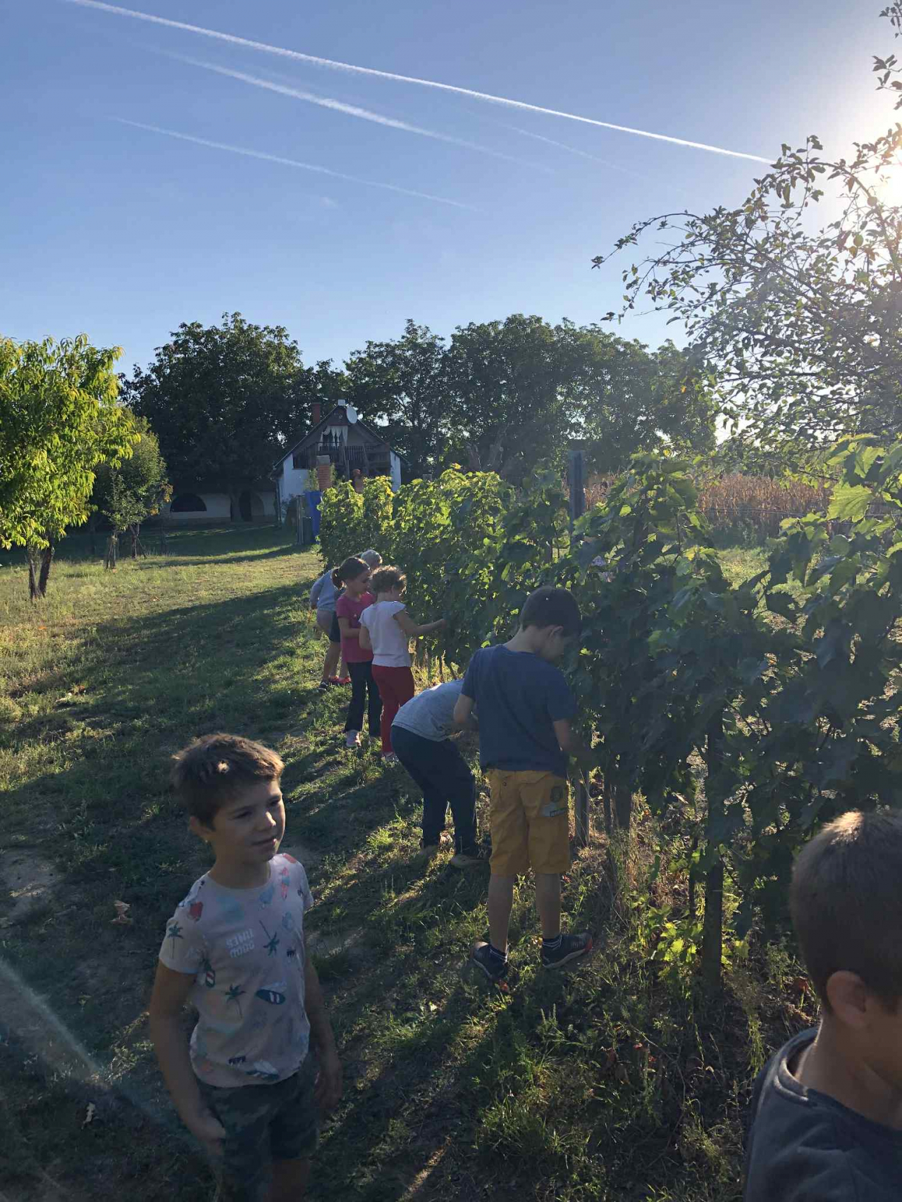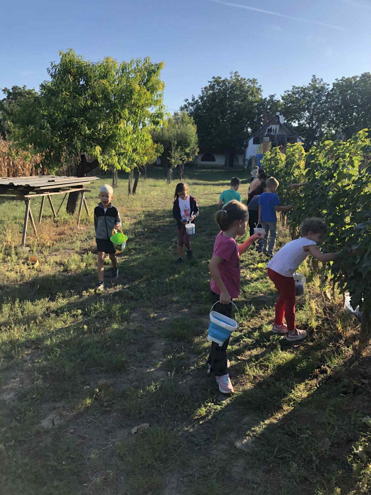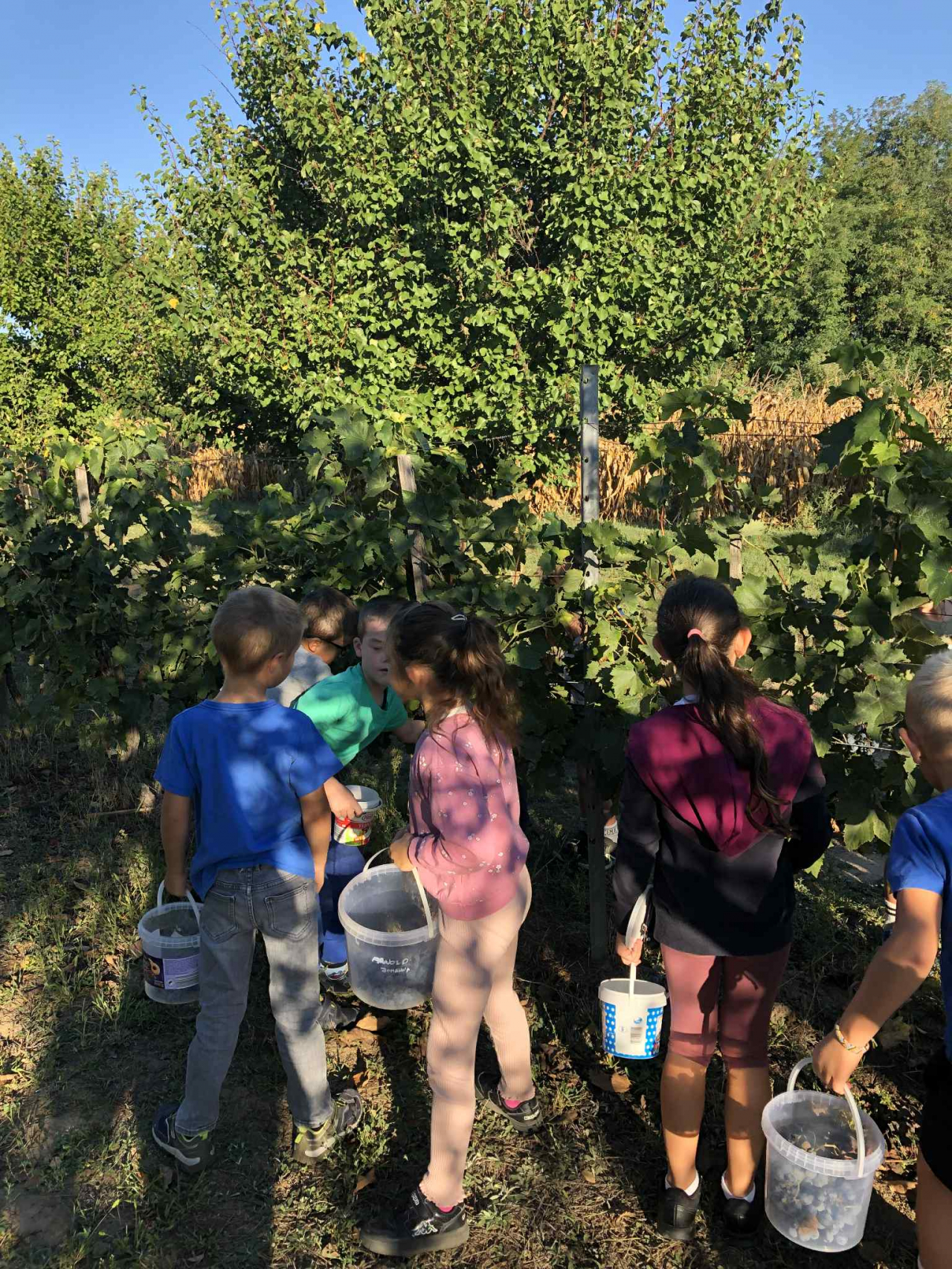 Meghívást kapott az 1.c osztály egy szüretelésre, melyet a mai napon valósítottunk meg a pincesoron. A délelőtt nagyon tartalmasan telt. A gyerekek nagyon élvezték a szüretelést és a színes programokat, játékokat. Szedtünk szőlőt, almát, illetve kukoricát, amit majd a technika órán hasznosítani fogunk. Sokat fogócskáztunk, kidobóztunk. Remek akadályokon mehettek végig a gyerekek, volt lehetőség együtt énekelni, fára mászni, figyelemfejlesztő gyakorlatokat csinálni, kicsit mondókázni - számolni is. A programok mind hozzájárultak a gyermekek tudásának bővítéséhez. Egy “kis környezet órával” is felért ez a pár óra. A gyerekek nagyon-nagyon élvezték és kihasználták minden percét!