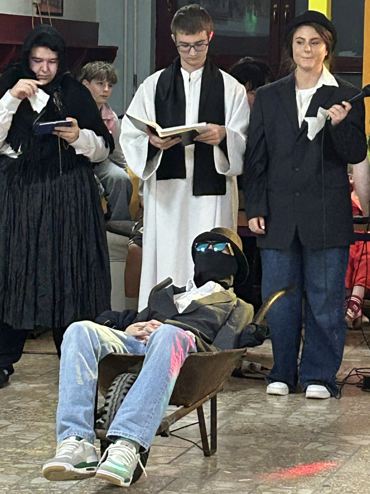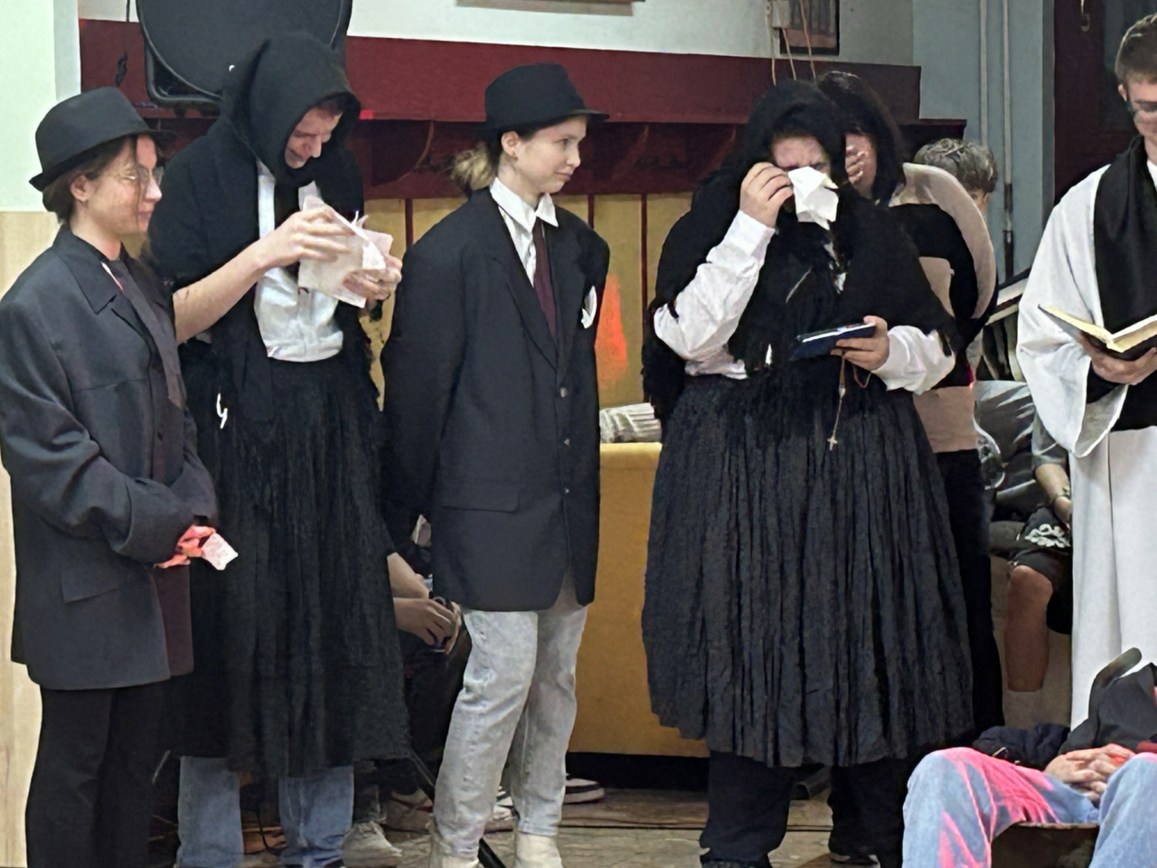 Neben dem fröhlichen Krapfenbacken haben wir auch den alten Brauch des „Faschingsbegraben“ wieder zum Leben erweckt, den wir gemeinsam mit der Klasse 8c aufgeführt haben.