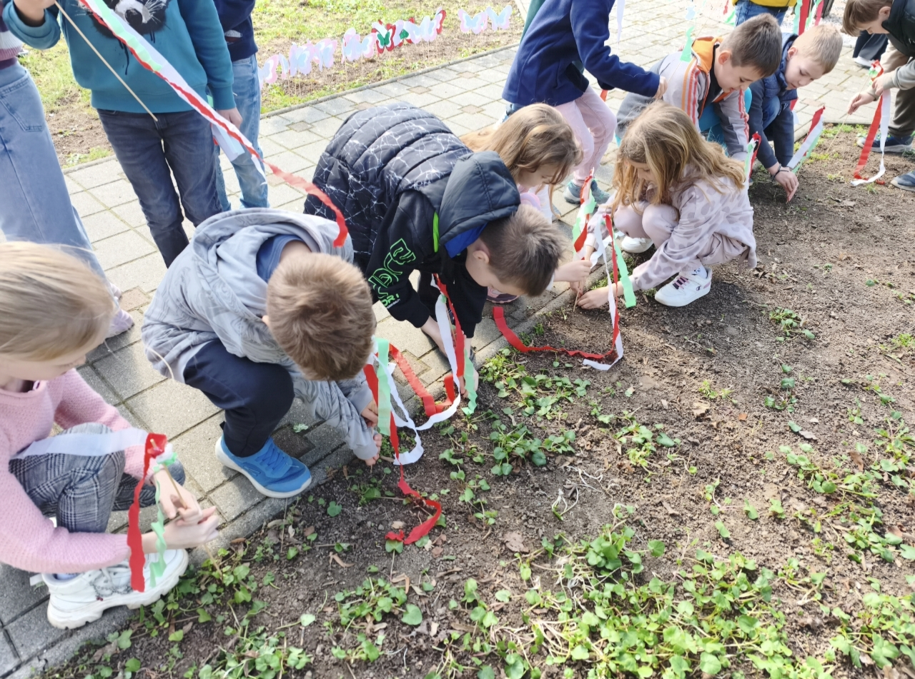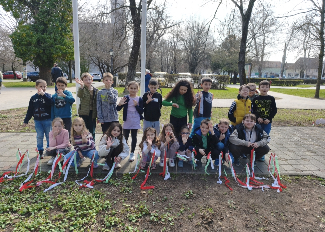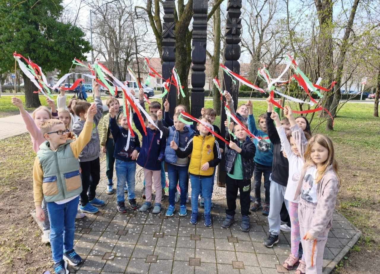 Saját kezűleg készített nemzeti színű zászlóinkat kivittük a kopjafákhoz, ahol méltó módon emlékeztünk meg az ünnepről. A gyerekek ünnepi szívvel, tisztelettel és büszkeséggel szavalták el a Nemzeti dalt Nemzeti dal, felidézve az 1848–49-es forradalom és szabadságharc hőseit.