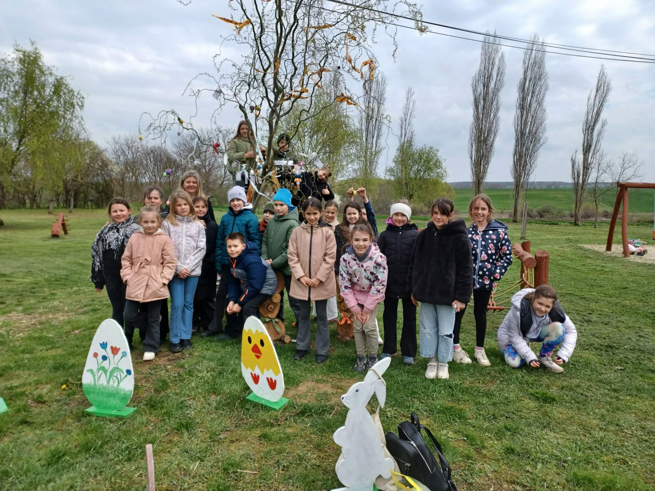 Sie machten einen Spaziergang rund um den Fischteich und besuchten anschließend auch den Spielplatz, wo eine fröhliche Ostereiersuche auf die Kinder wartete.