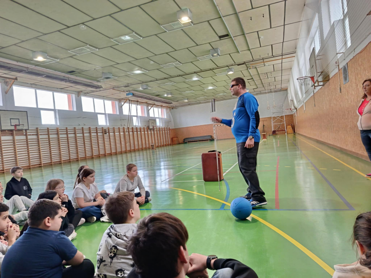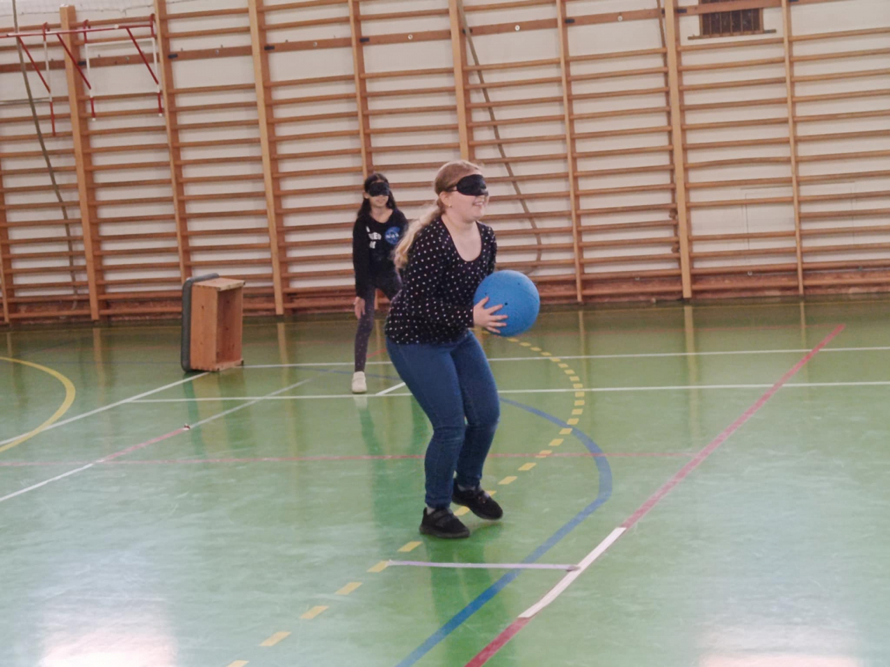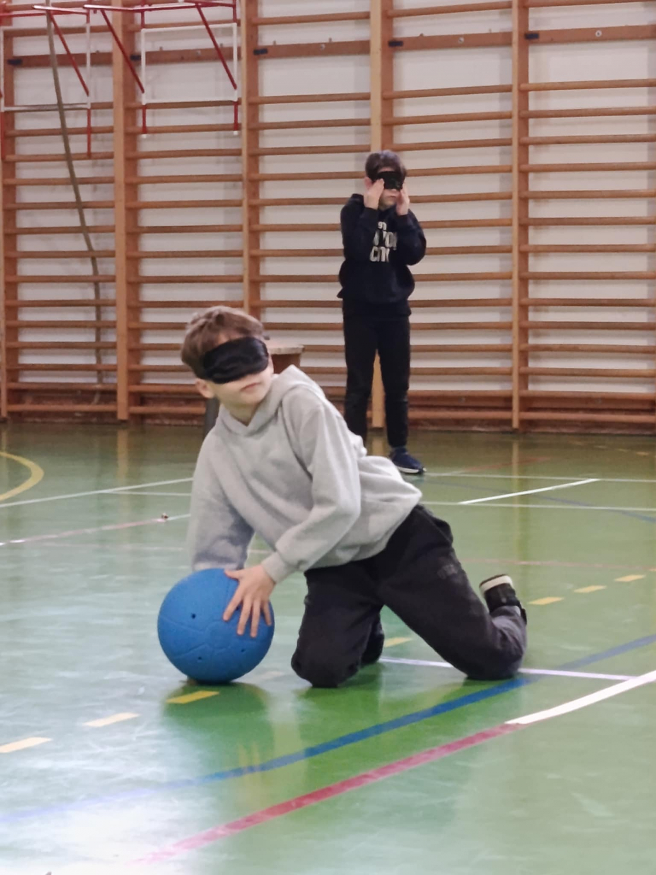 Ez alkalomból tartott csörgőlabdás bemutató órát a Vakok és Gyengénlátók Baranya Megyei Egyesülete a 4. évfolyamos diákjainknak.