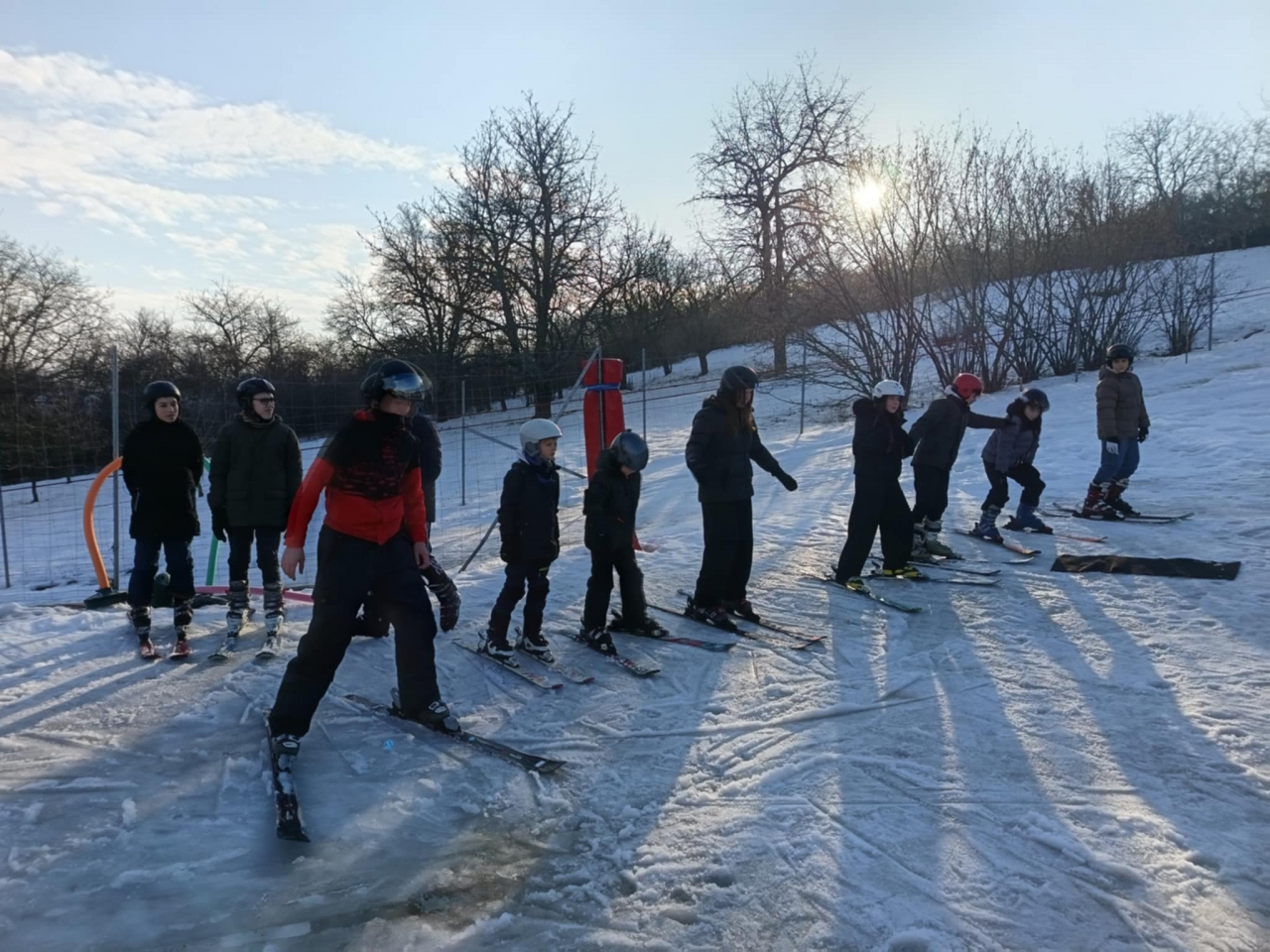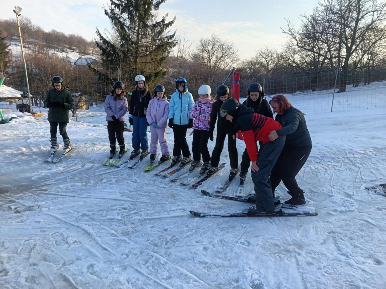 2026.01.16-án 19 fő tanulónk próbálhatta ki INGYEN a tanpályás síelést Bogádon!