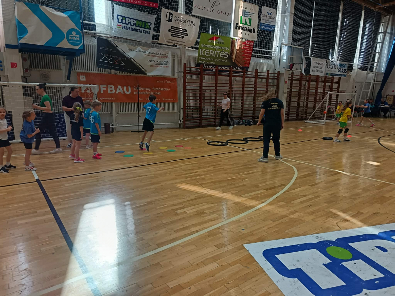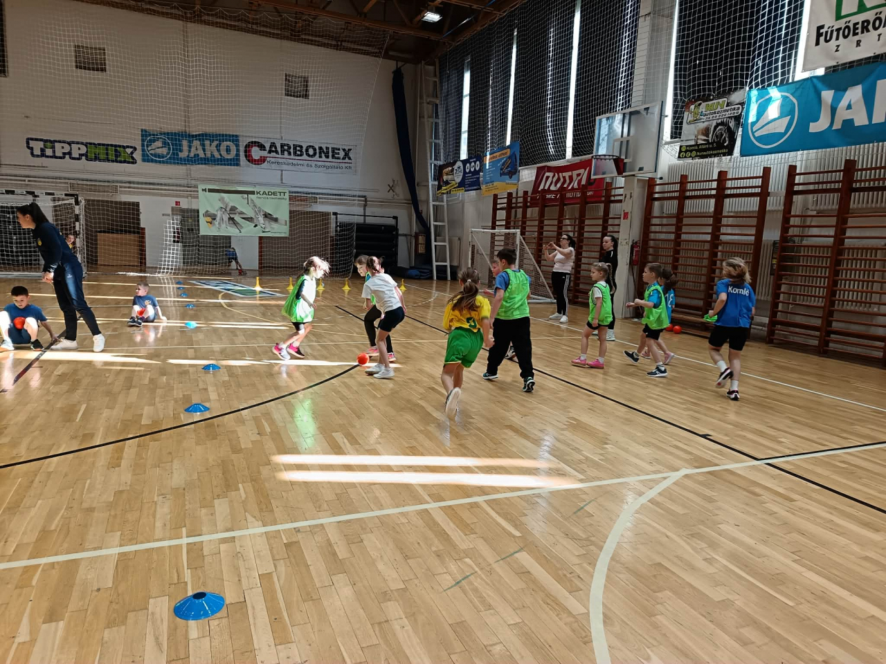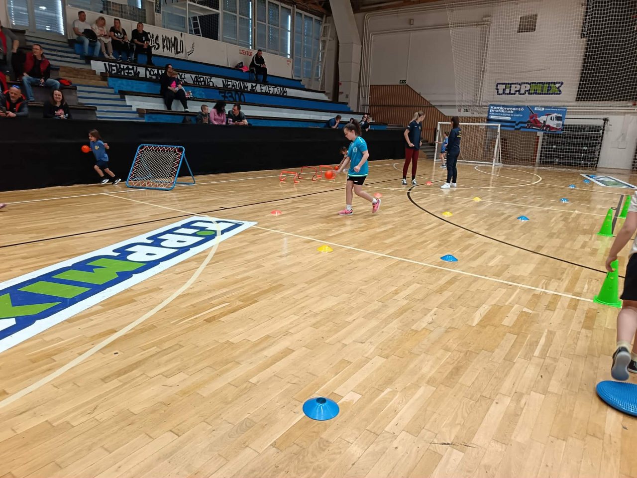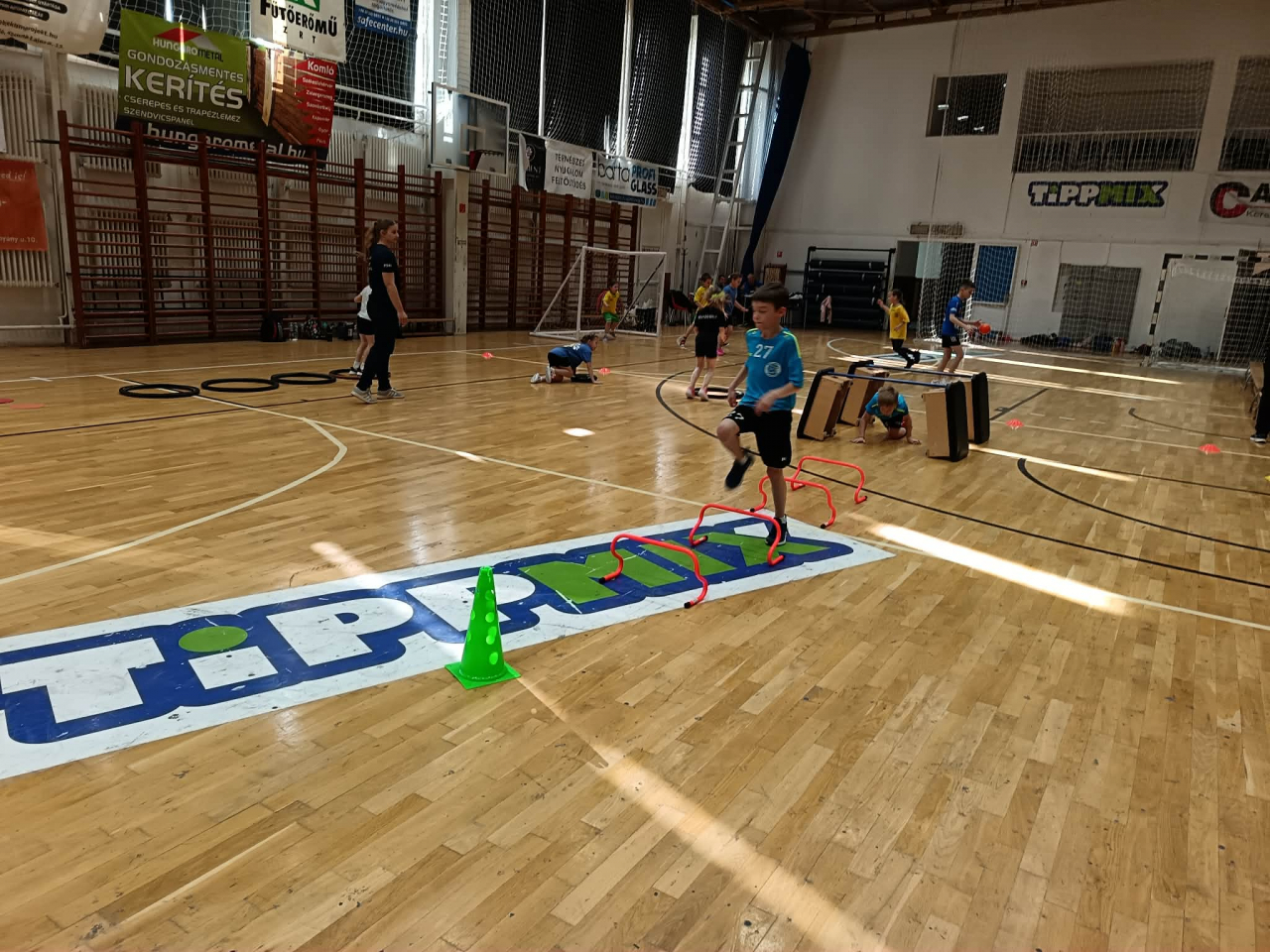 A gyerekek vegyes csapatokat alkotva hat különböző gyakorlóhelyen ügyességi feladatokat teljesítettek, majd kétkapus játékra került a sor.