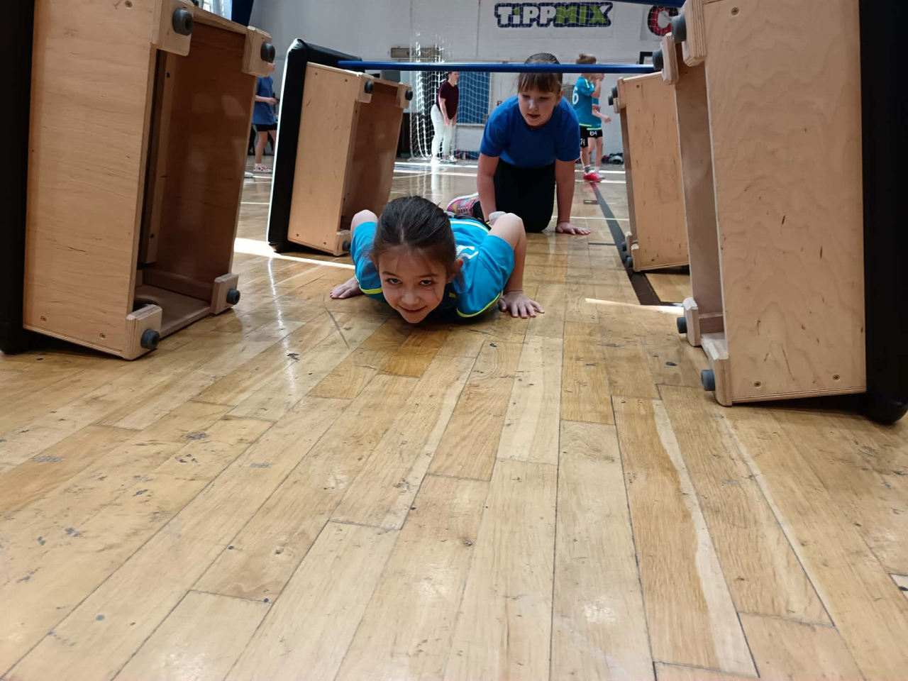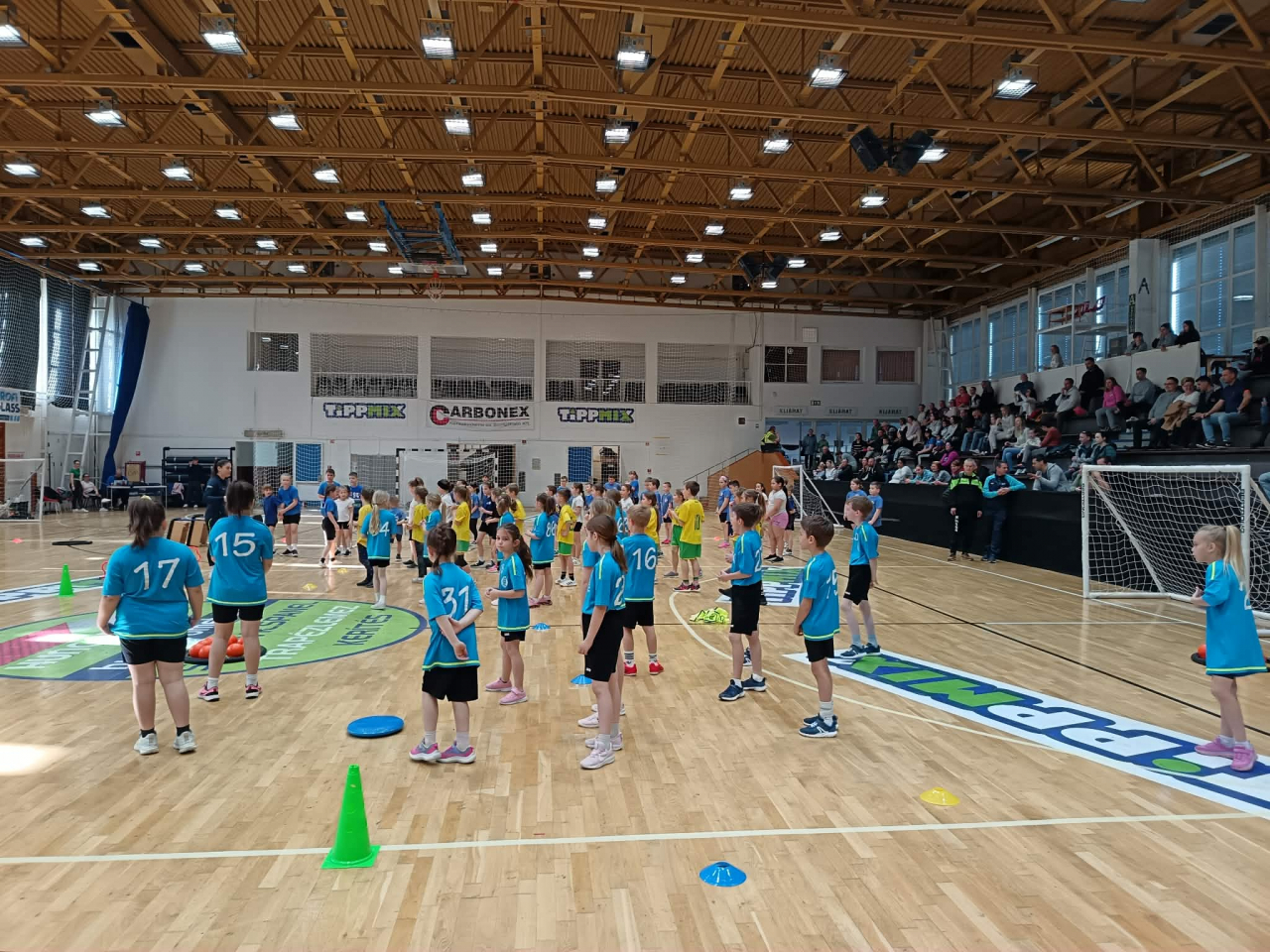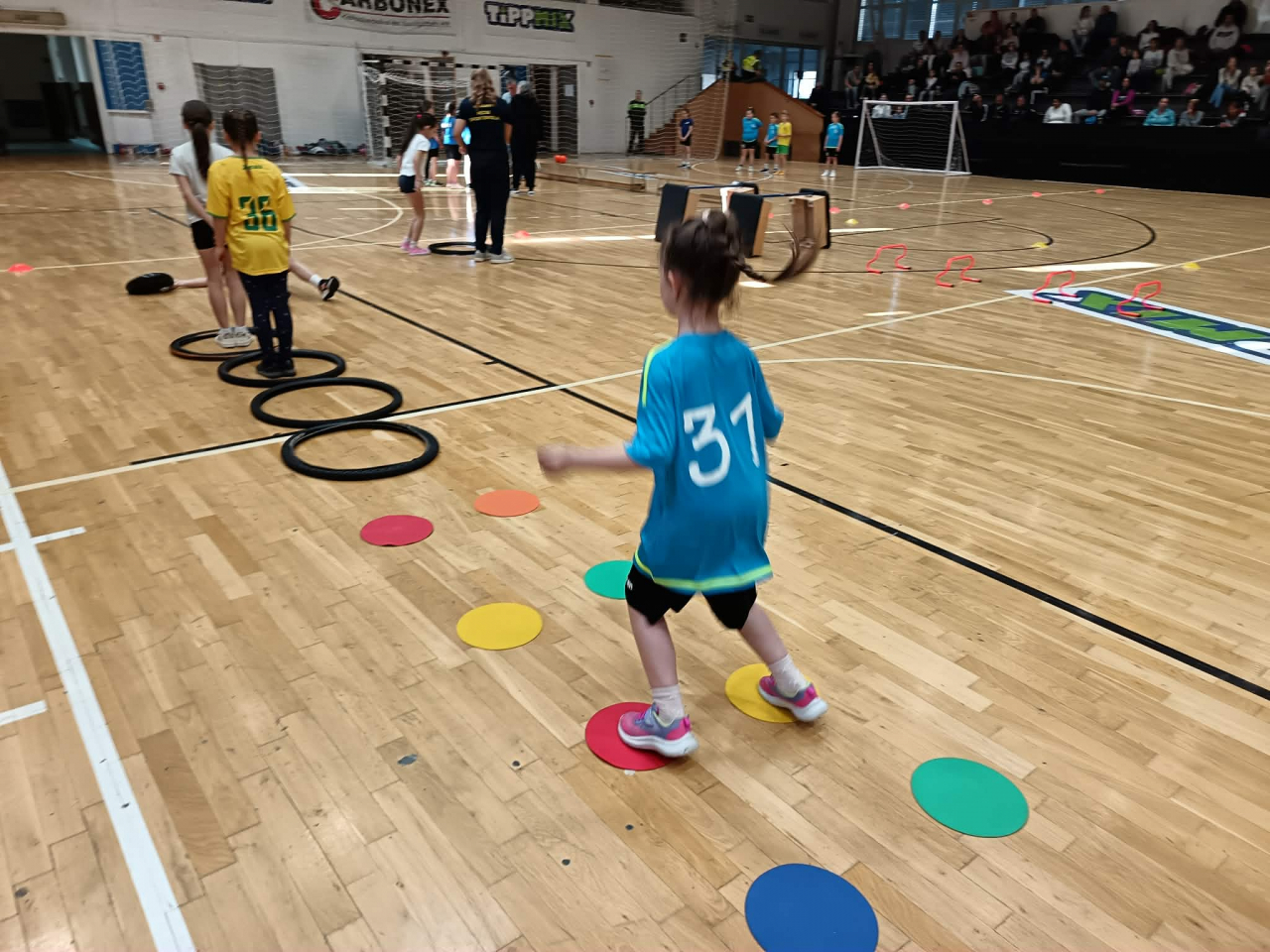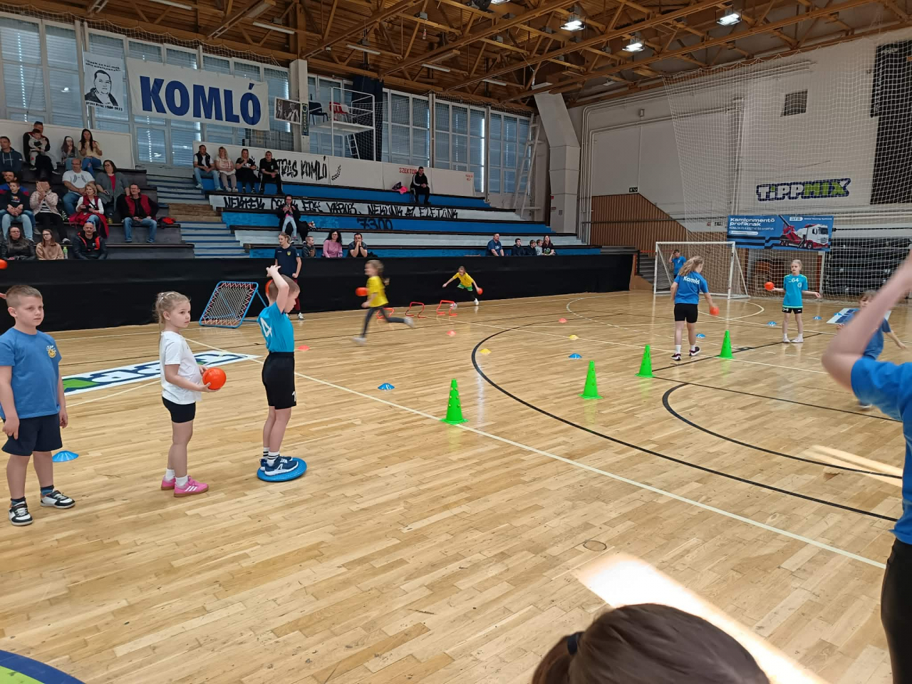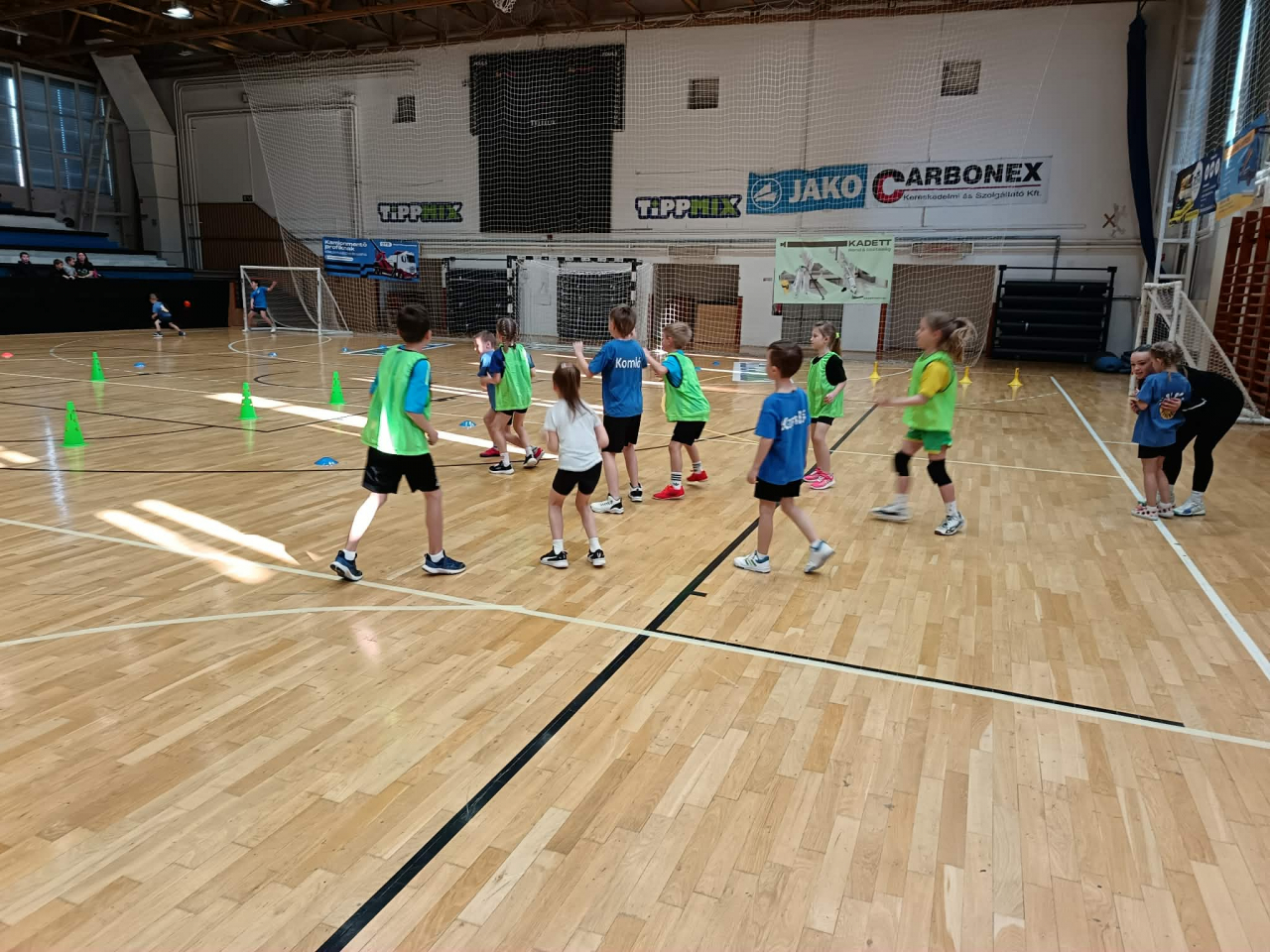A gyerekek vegyes csapatokat alkotva hat különböző gyakorlóhelyen ügyességi feladatokat teljesítettek, majd kétkapus játékra került a sor.