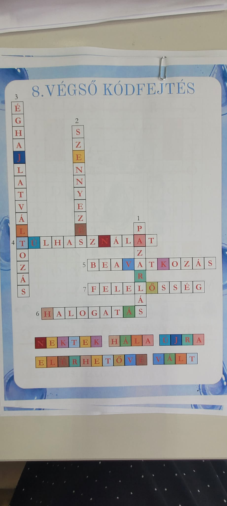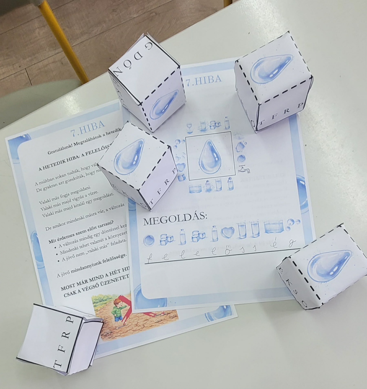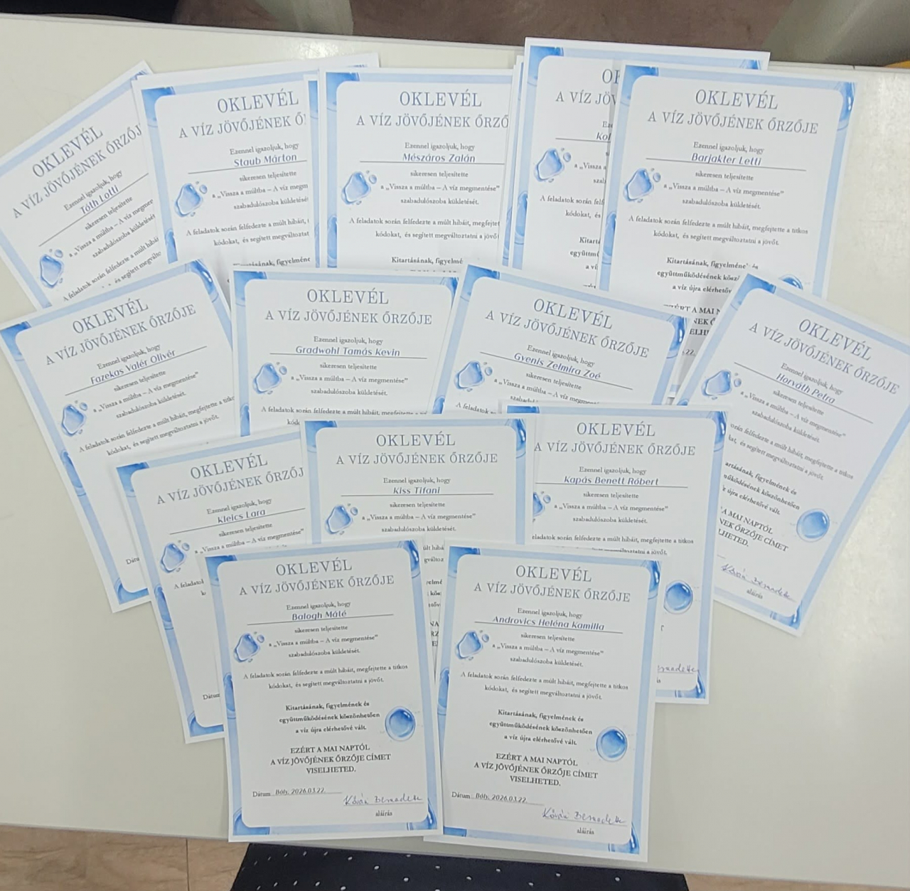 A 3.a osztály a héten ismét egy küldetés teljesítésére vállalkozott, melynek a témája " A víz megmentése...Vissza a múltba" A küldetés célja volt, hogy a gyerekek játékos formában megismerjék a víz jelentőségét, valamint azokat az emberi tevékenységeket, amelyek hozzájárulnak a vízhiány kialakulásához. A gyerekek feladata, hogy egy 2050-ből érkező üzenet segítségével visszautazzanak az időben és feltárják a múlt hibáit és segítsenek megváltoztatni a jövőt. A csapatban való munka a logikai gondolkodásukat, együttműködési készségüket fejlesztette, illetve a környezeti érzékenységük is alakult. A projekt során állomásokat jártak be változatos feladatokkal, hogy üzenetet küldjenek vissza a múltba, míg mielőtt túl késő lenne. Egy "Időkaput" kellett aktiválni a megfejtett kódok segítségével. Ha időben visszaküldik a kódot, a jövő megváltozik, a kiapadt folyók újra megtelnek, a tavak visszatérhetnek, a víz újra elérhetővé válik. A játék végére a gyerekek felismerték, hogy a víz megőrzése közös felelősségünk. Természetesen oklevél járt a végén, "a víz jövőjének őrzője " címmel. Nagyon tanulságos és szórakoztató hét volt.