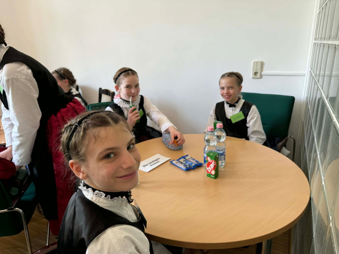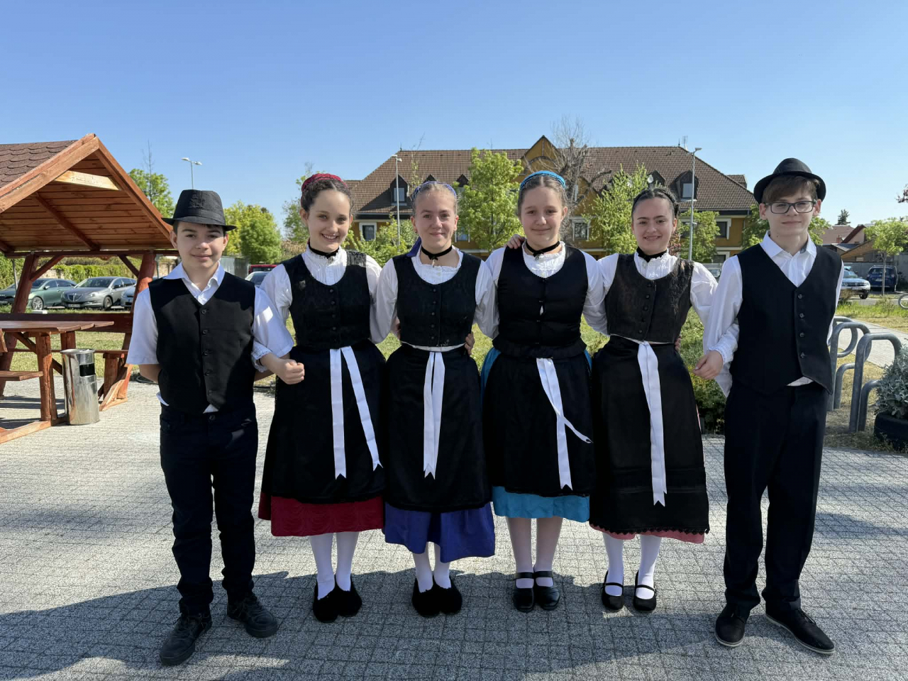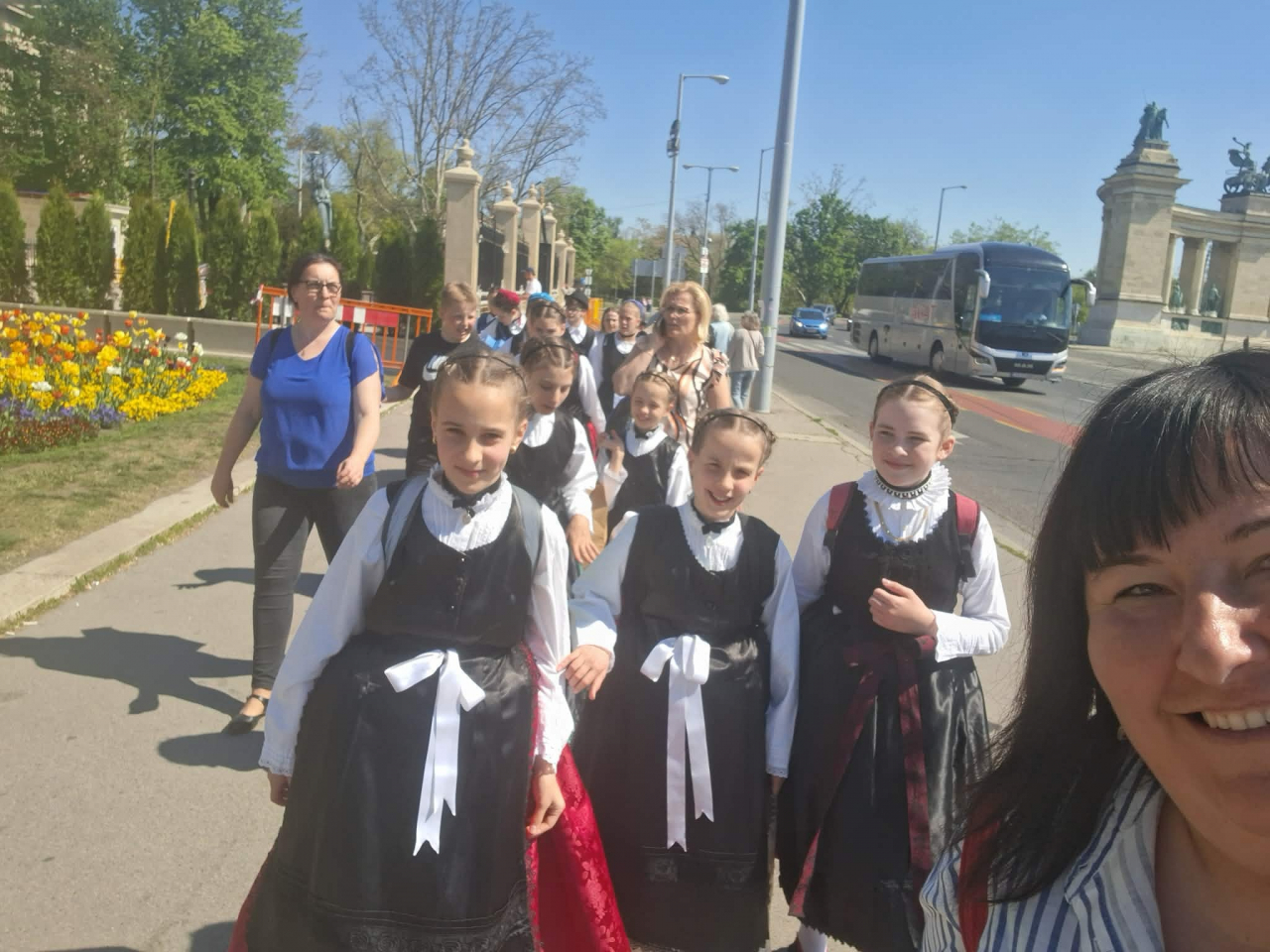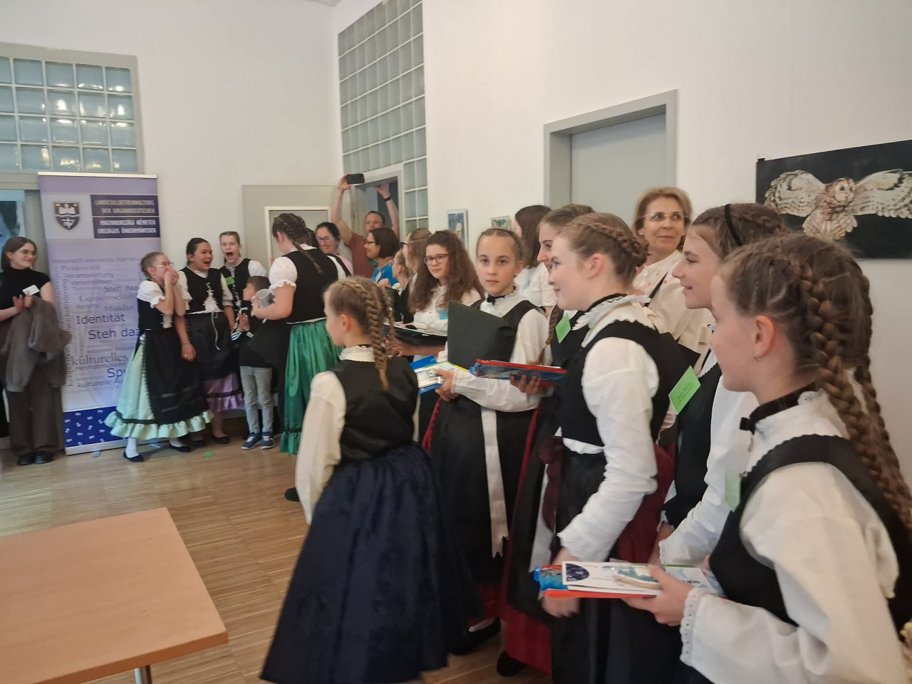 A hajnali indulást követően az országos német nyelvű népdaléneklési versenyen kiskórus és duó kategóriákban képviselték iskolánkat a csapatok: