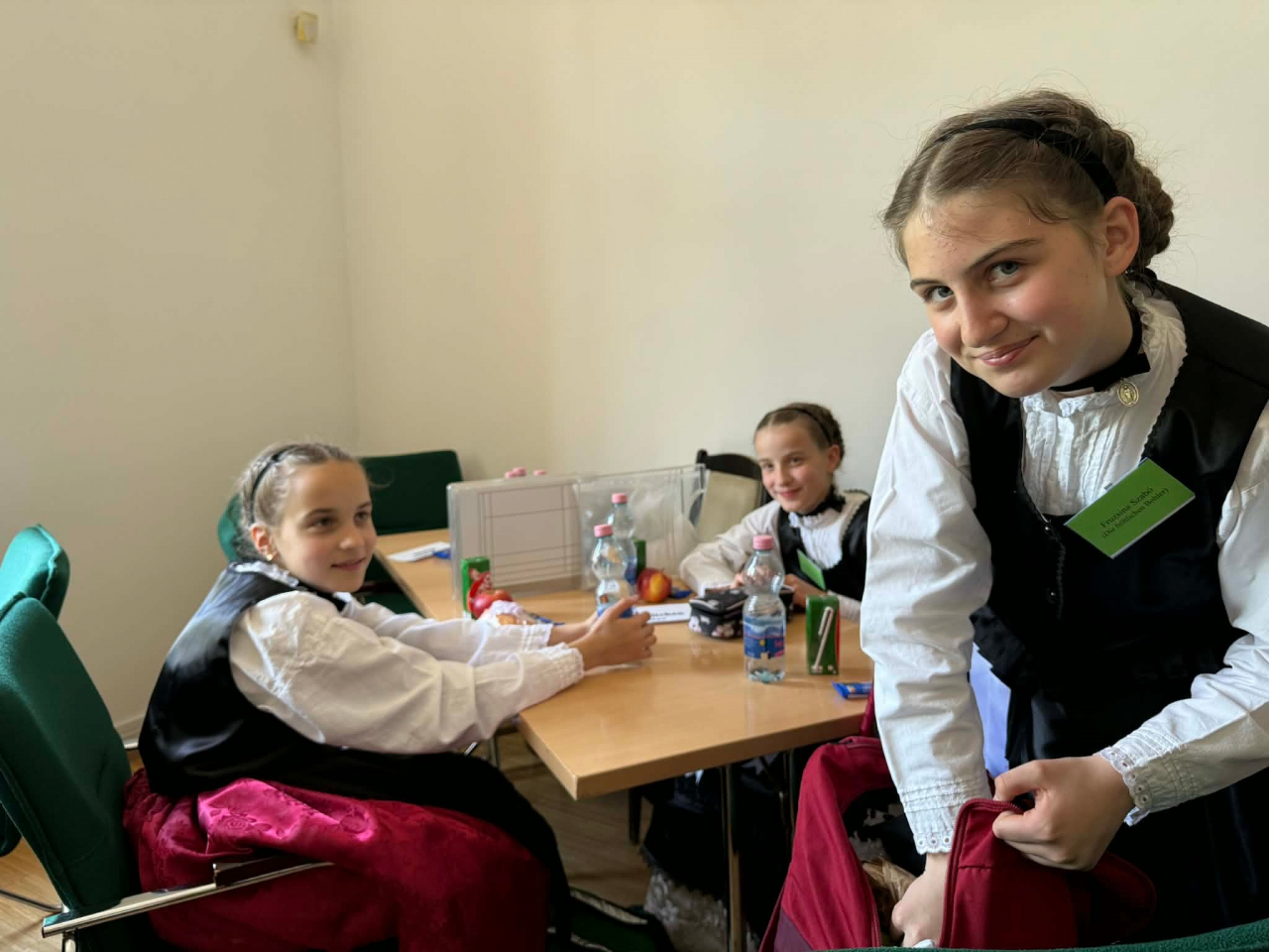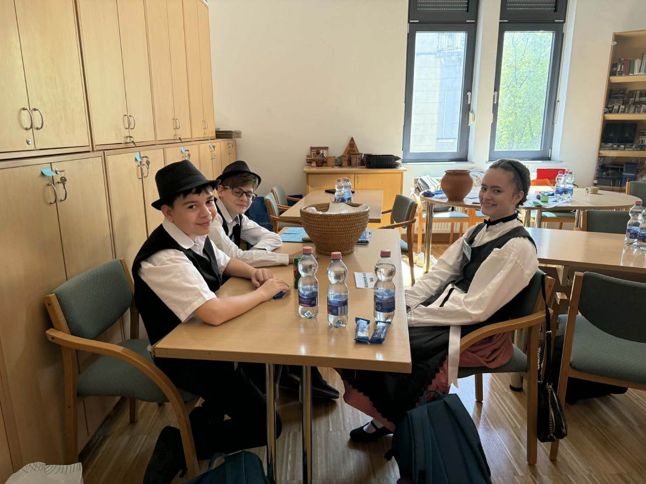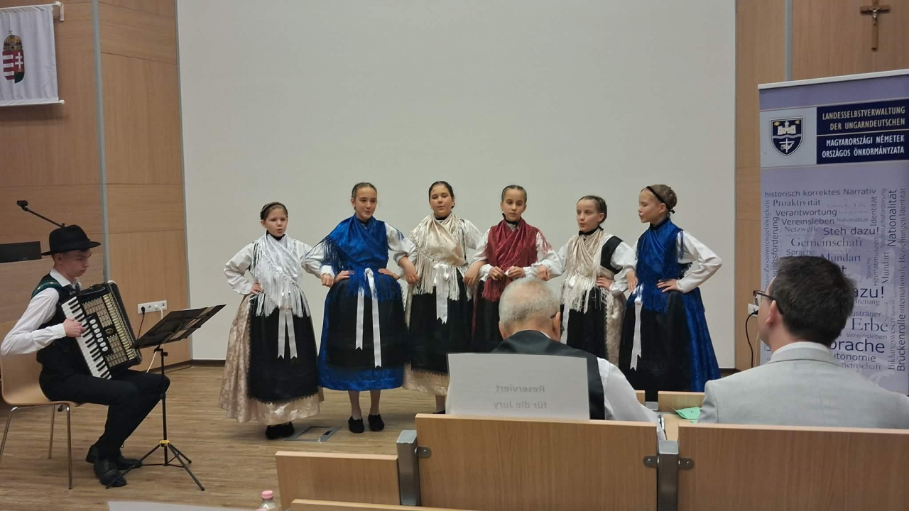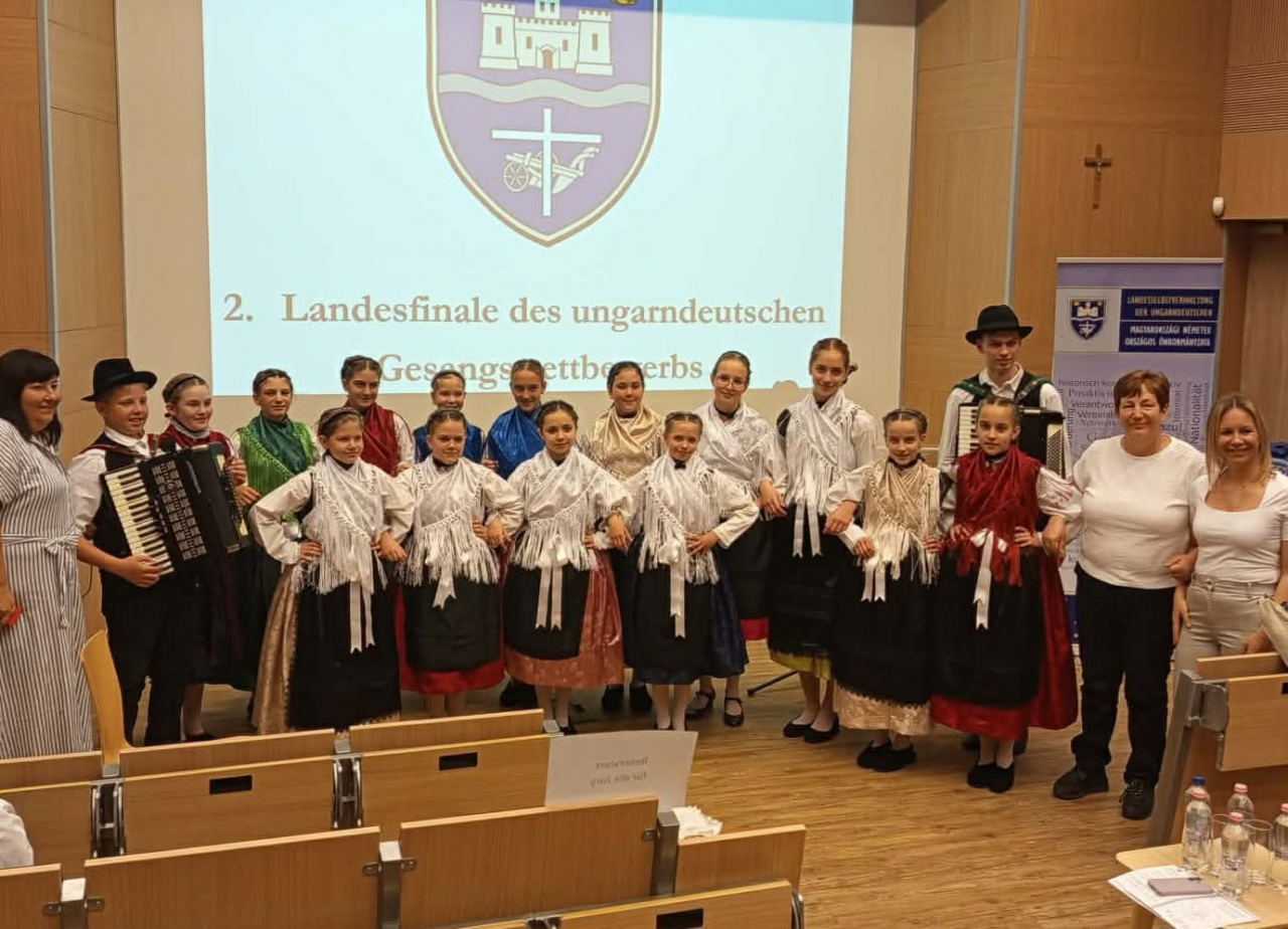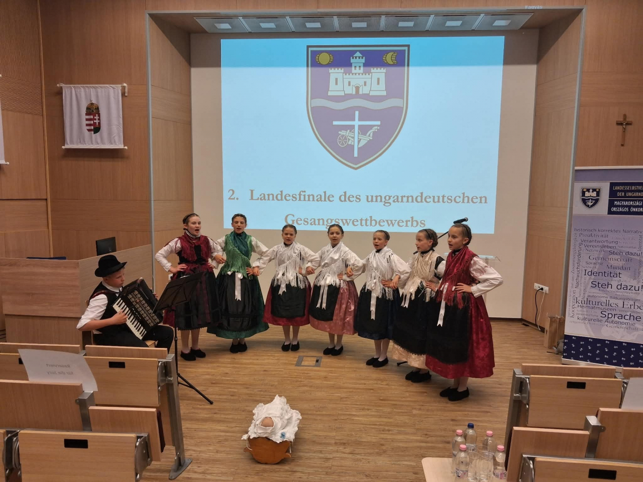 A hajnali indulást követően az országos német nyelvű népdaléneklési versenyen kiskórus és duó kategóriákban képviselték iskolánkat a csapatok:
