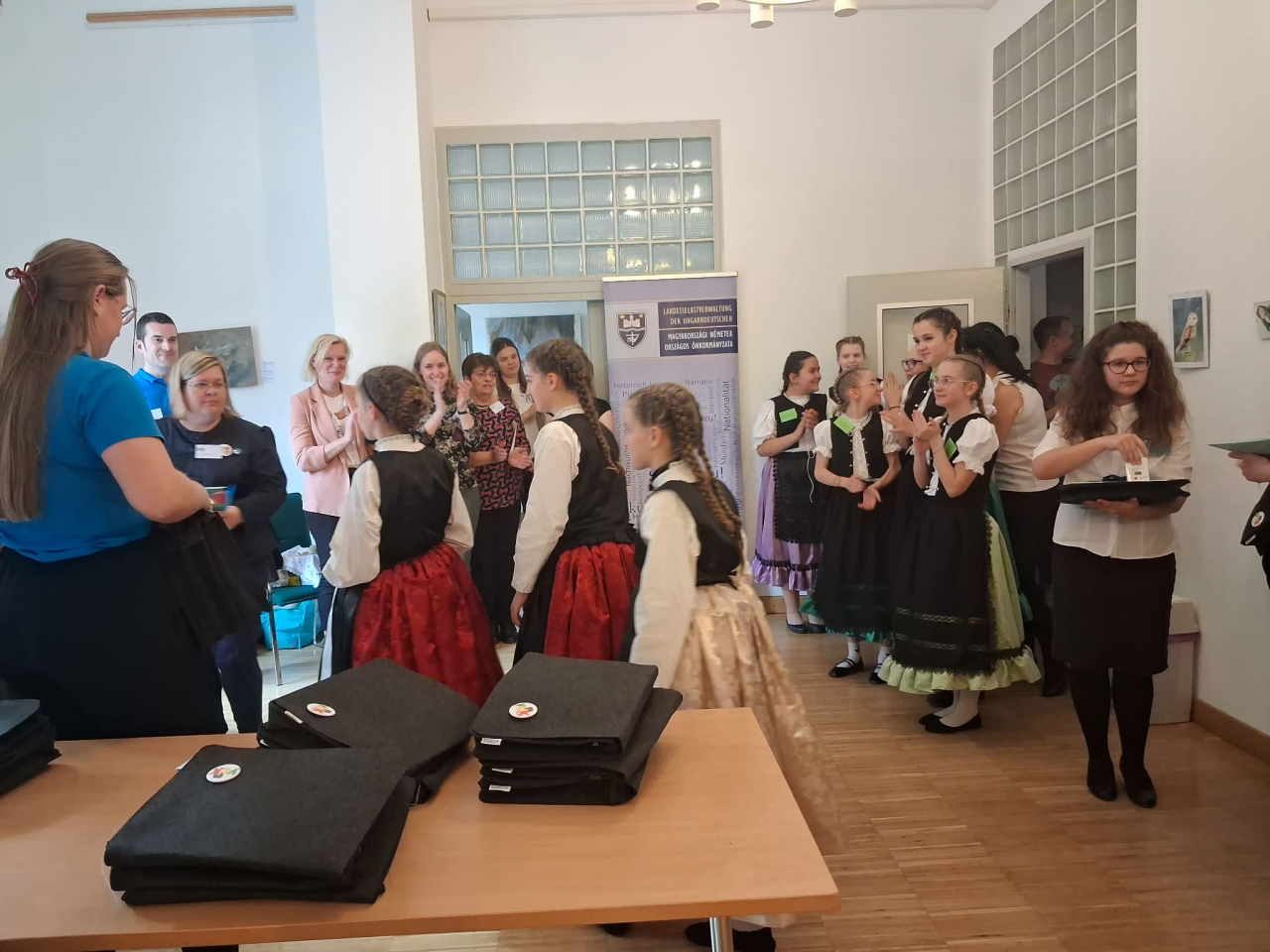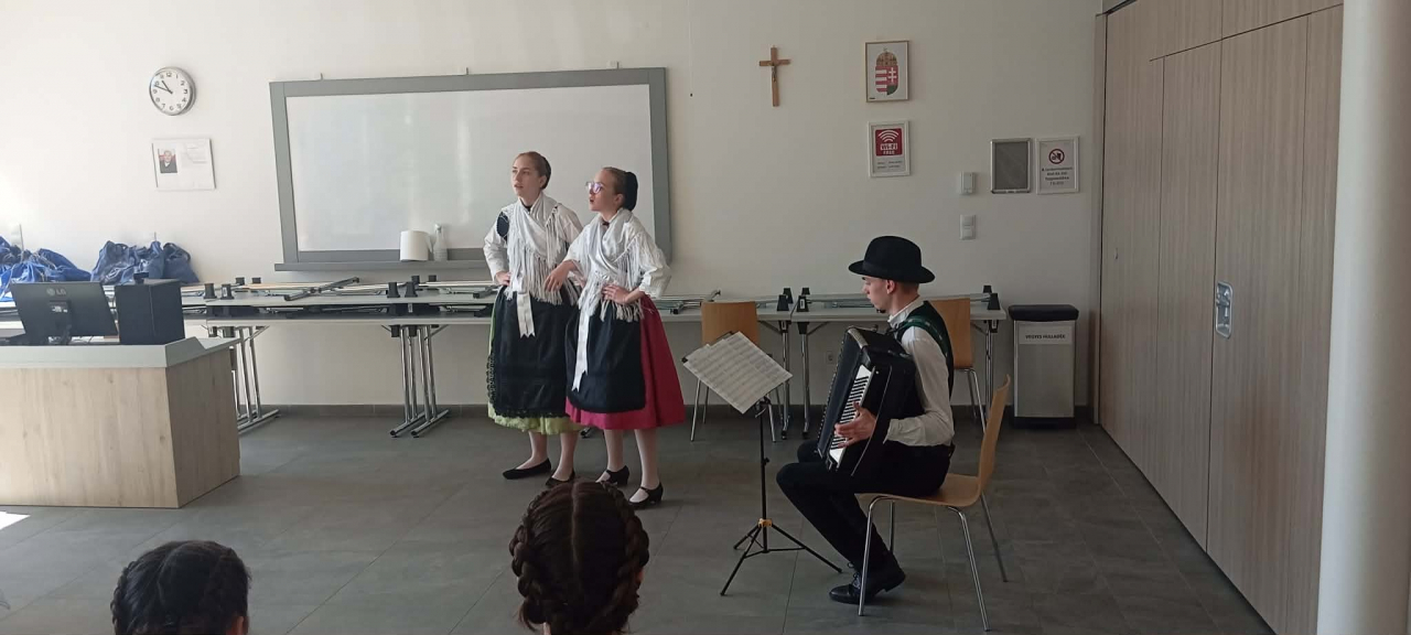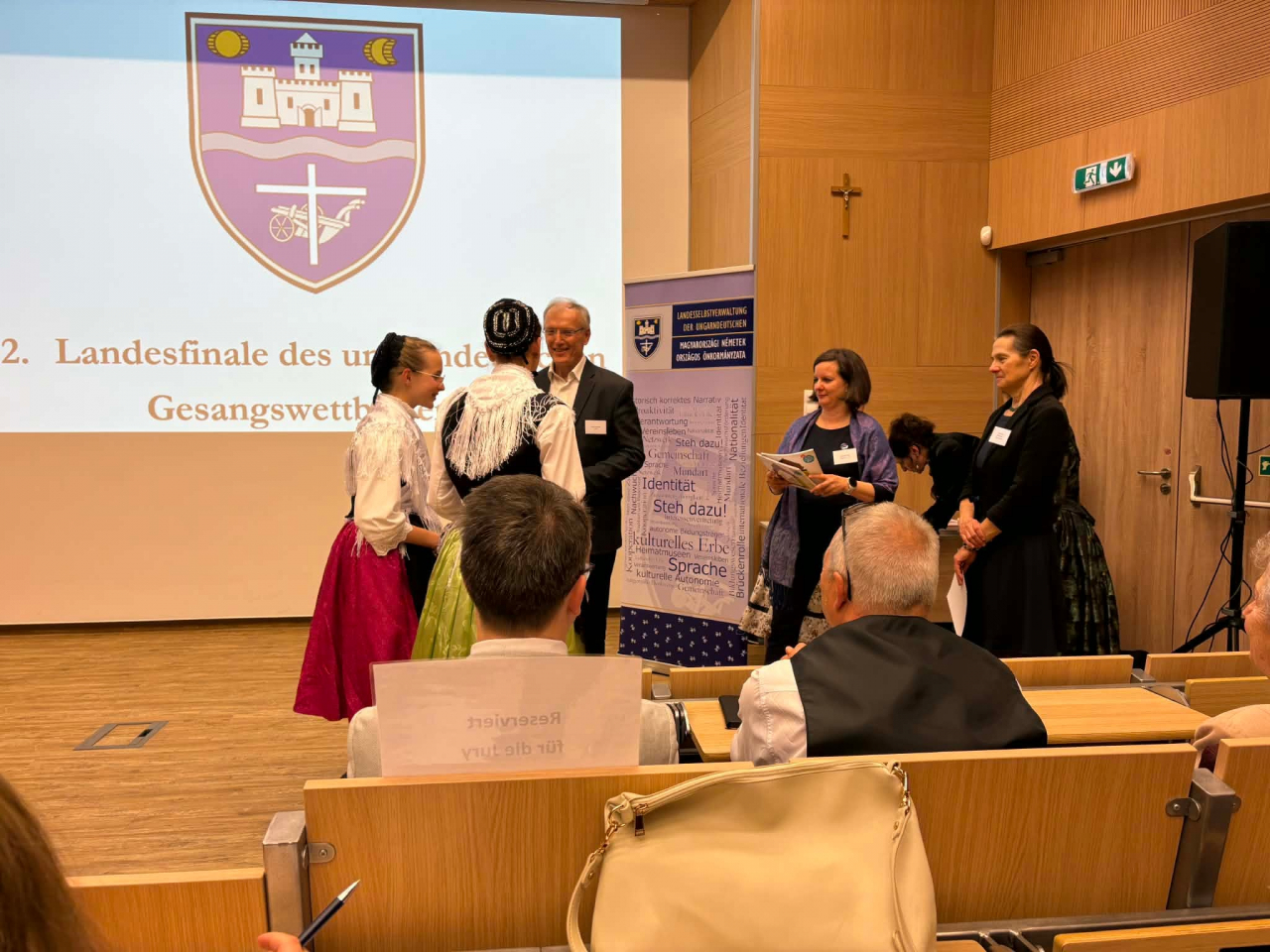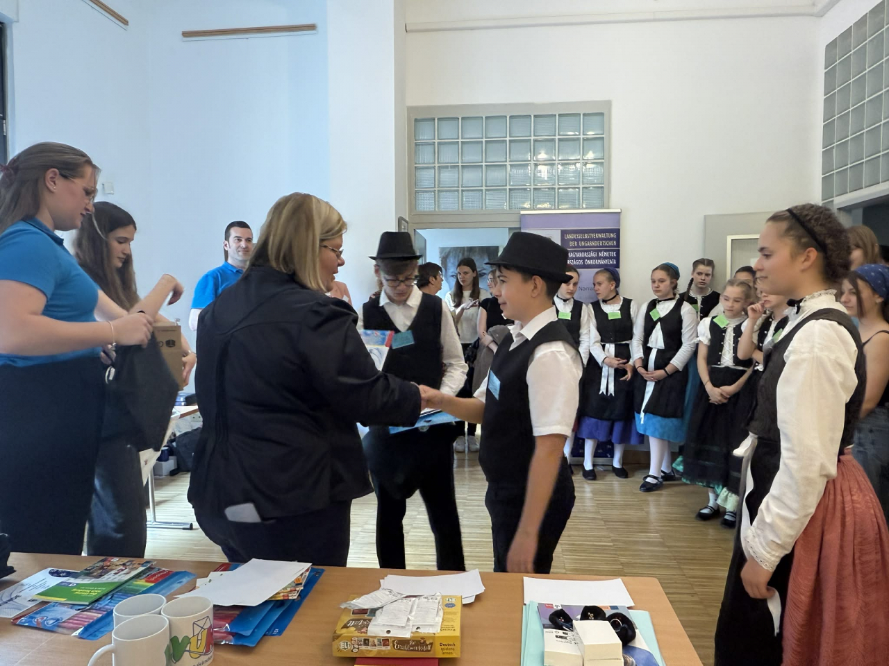 A hajnali indulást követően az országos német nyelvű népdaléneklési versenyen kiskórus és duó kategóriákban képviselték iskolánkat a csapatok: